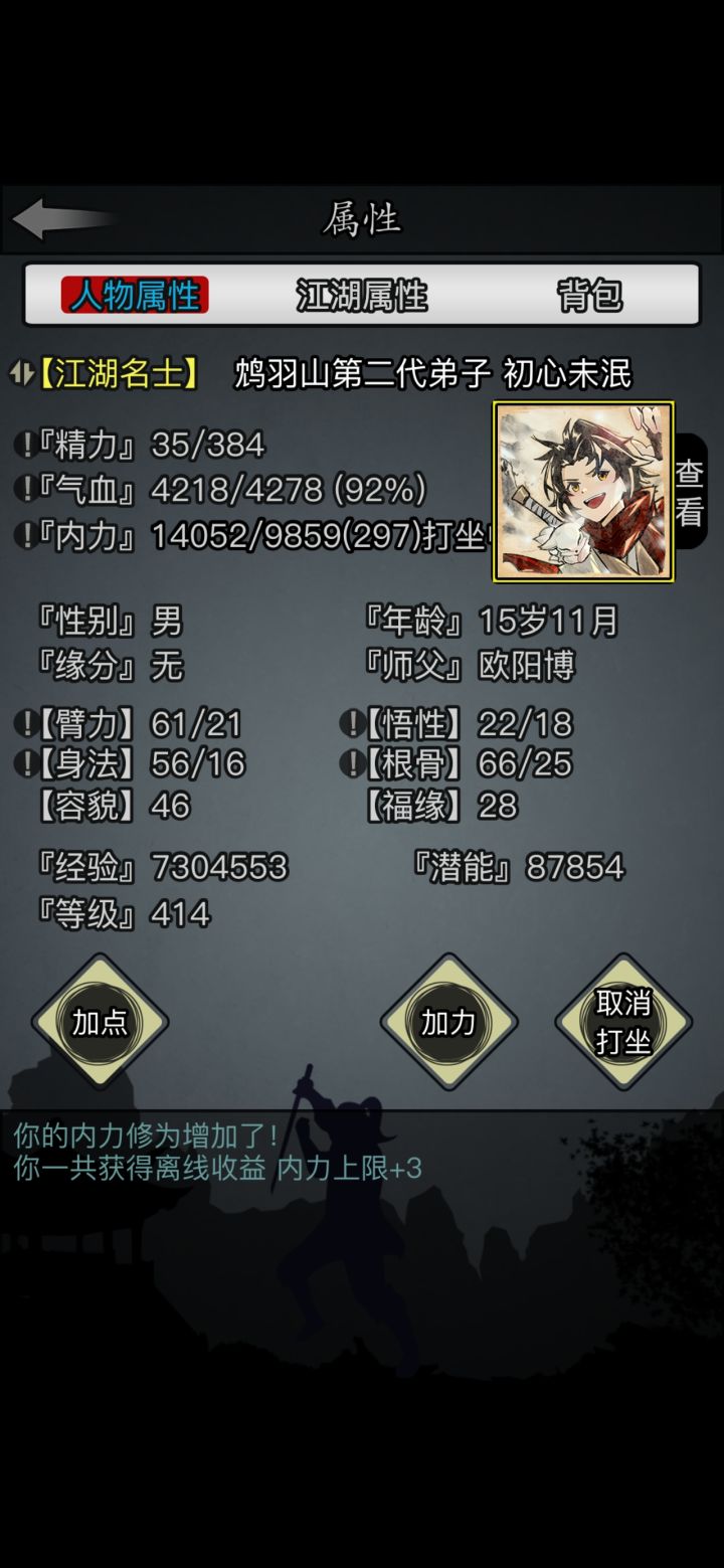 前段时间突然想要开一个新号,于是决定要不就玩一下六世散人。立此贴为起点,督促自己坚持下去!其实接触这游戏蛮久了,我是当年小程序玩家(没错,放置江湖出过小程序版本),当时玩到三转就关服了,也没要退款,而是移植到新服,后来玩了几天不想玩了就给YES了。所以,算是弥补当年的遗憾,也算是重新拾起初入江湖时的热情。零转!零氪!六世散人!从这里开始!从今天开始我会以至少三天一更新的速度发布此角色的进