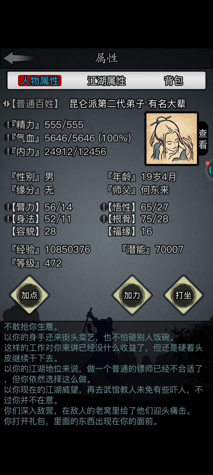 前段时间突然想要开一个新号,于是决定要不就玩一下六世散人。立此贴为起点,督促自己坚持下去!其实接触这游戏蛮久了,我是当年小程序玩家(没错,放置江湖出过小程序版本),当时玩到三转就关服了,也没要退款,而是移植到新服,后来玩了几天不想玩了就给YES了。所以,算是弥补当年的遗憾,也算是重新拾起初入江湖时的热情。零转!零氪!六世散人!从这里开始!从今天开始我会以至少三天一更新的速度发布此角色的进