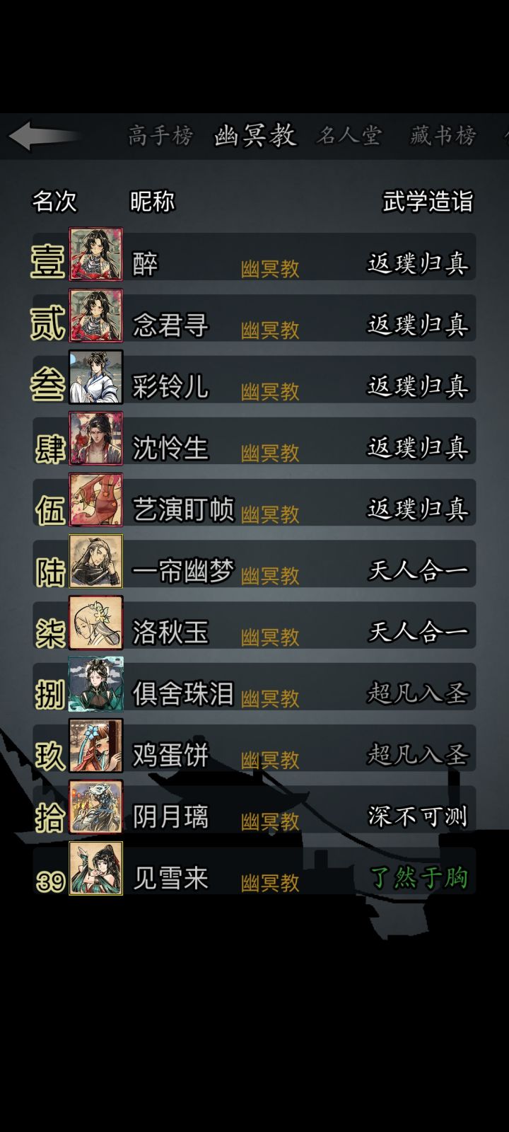 哇,幽冥教人这么少吗?我居然都39