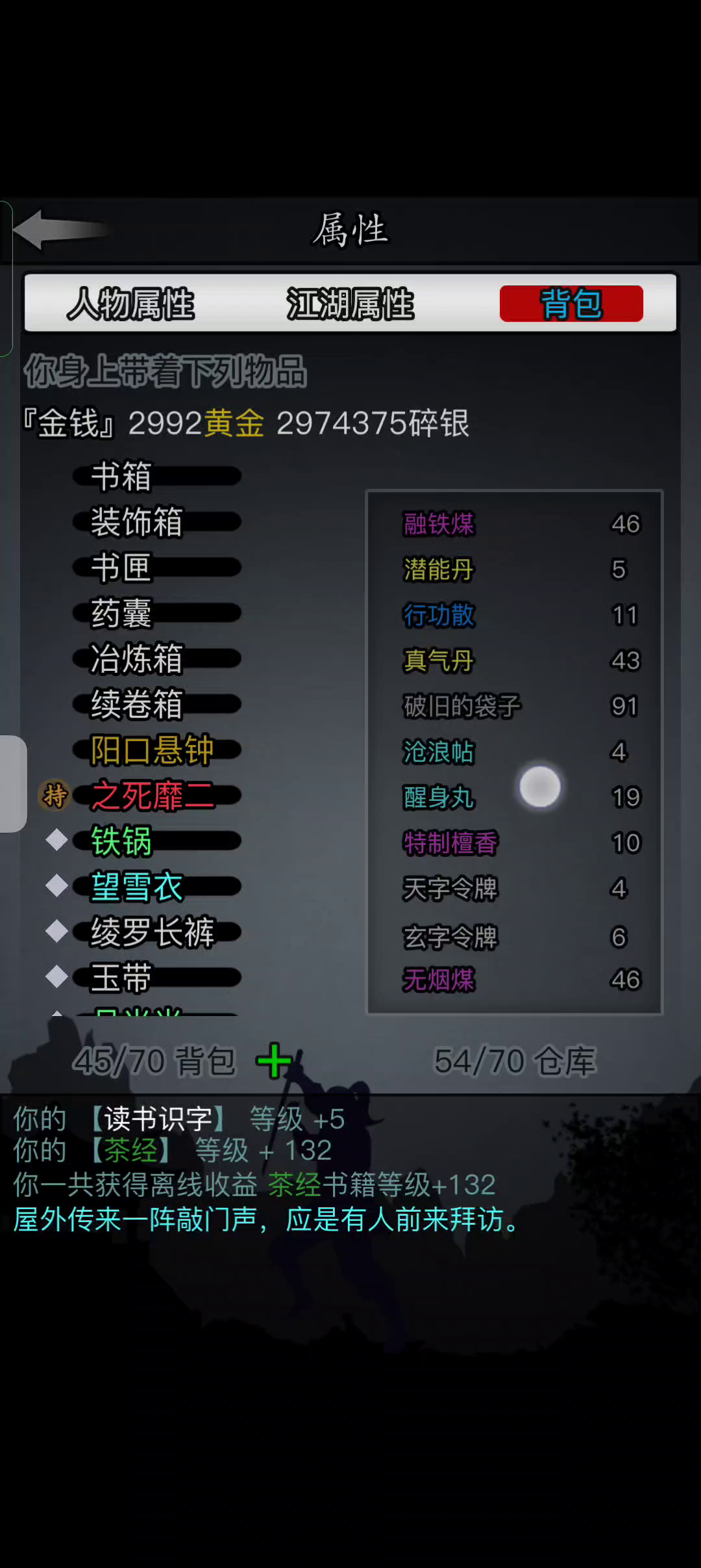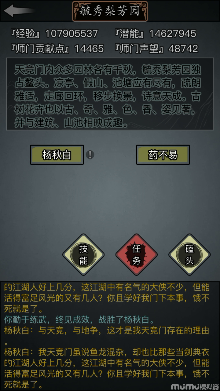 然后一路走到空道人发现他3w内力每次磨500左右,我空内了他回蓝比我打得快,暂时放弃。散人五煞神掌用毒最低要20先天根骨,目前又回到等开经脉了。