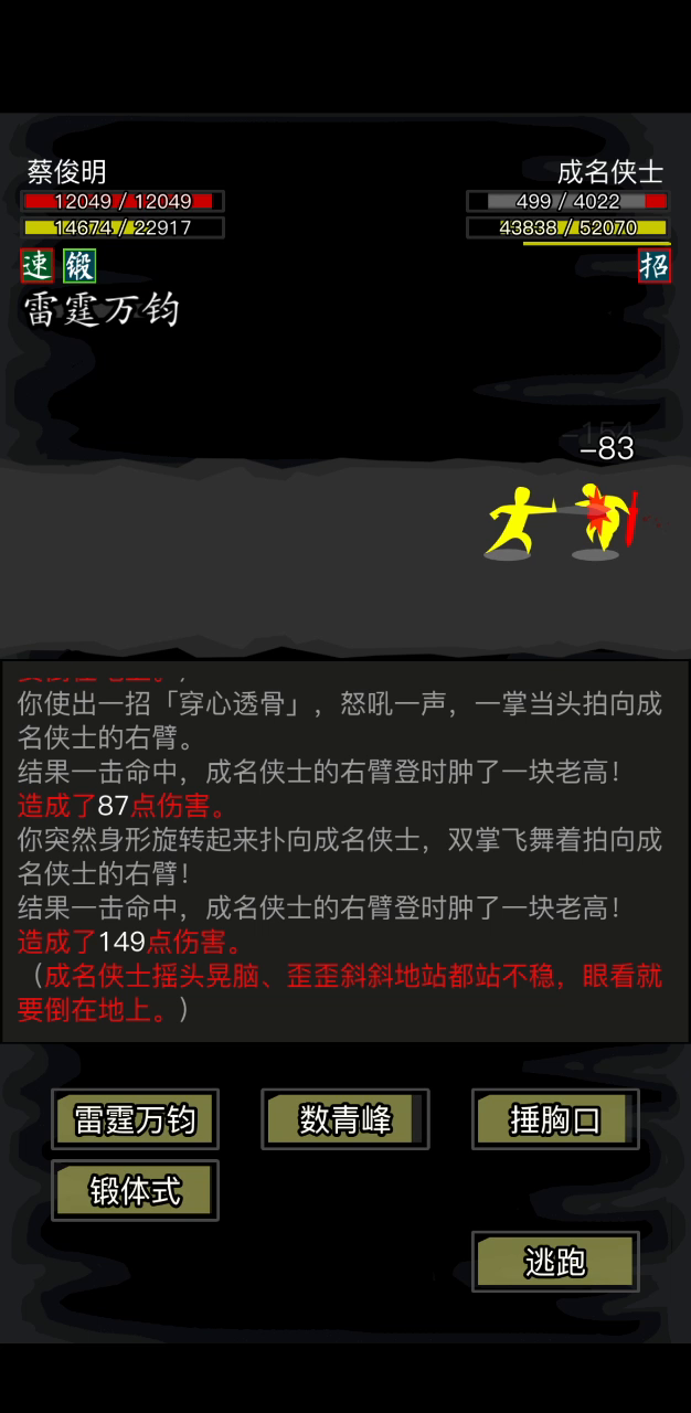 主手自创拳脚,然后内功或者轻功有伤害主动武学就行(凌霄,羽仙,明玉等等) 逸闻就还是一分钟 在小猴修复问题之前,可以先这么来