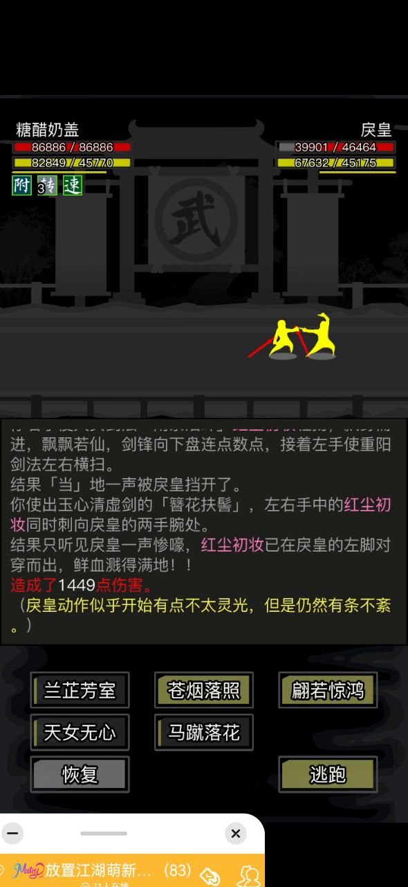 今天岚师姐。打不过跑路了。别人遇到我也跑路了