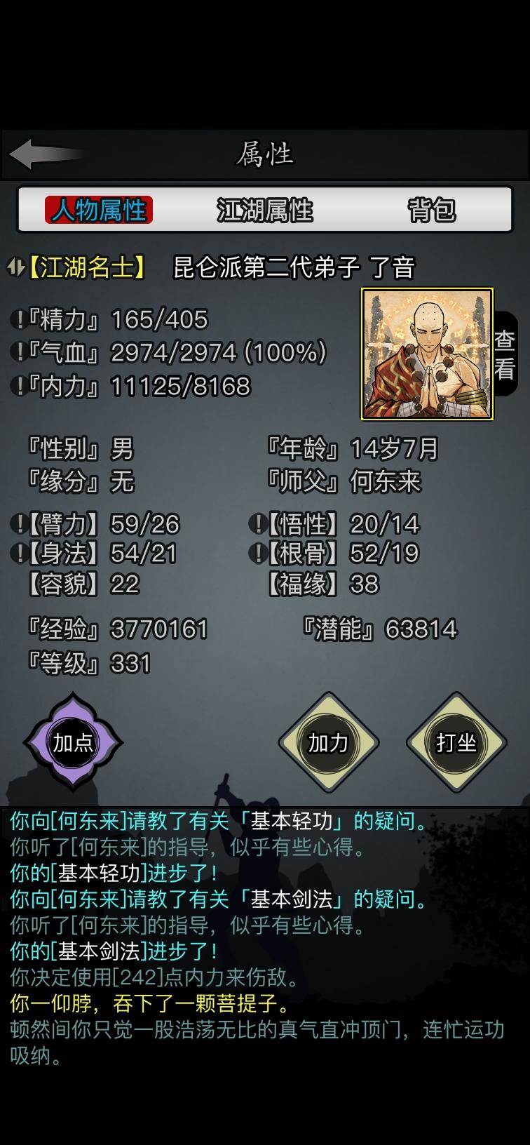 推图到第31章,终于挖完长生诀,就等阴阳了。上次香囊感觉溯源想用到要等很久,就换了七星这次香囊换哪个好?鬼步先排除,狂骨想用要等挺久,这俩应该都可以不要。珍宝阁换了个58棍,但是舍不得用天机升88。银票攒了1w多了,纠结阳口还是高门。