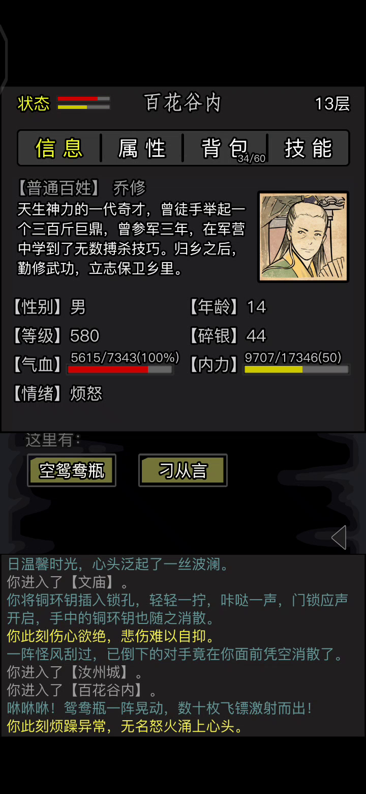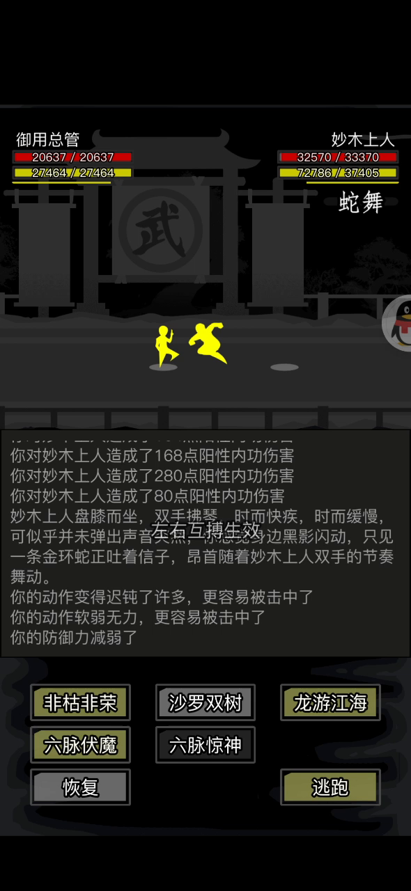 胡刀技能和等级都满了,嫁衣七重,潜龙九重。打架套初步成型,拿铜人试试效果。