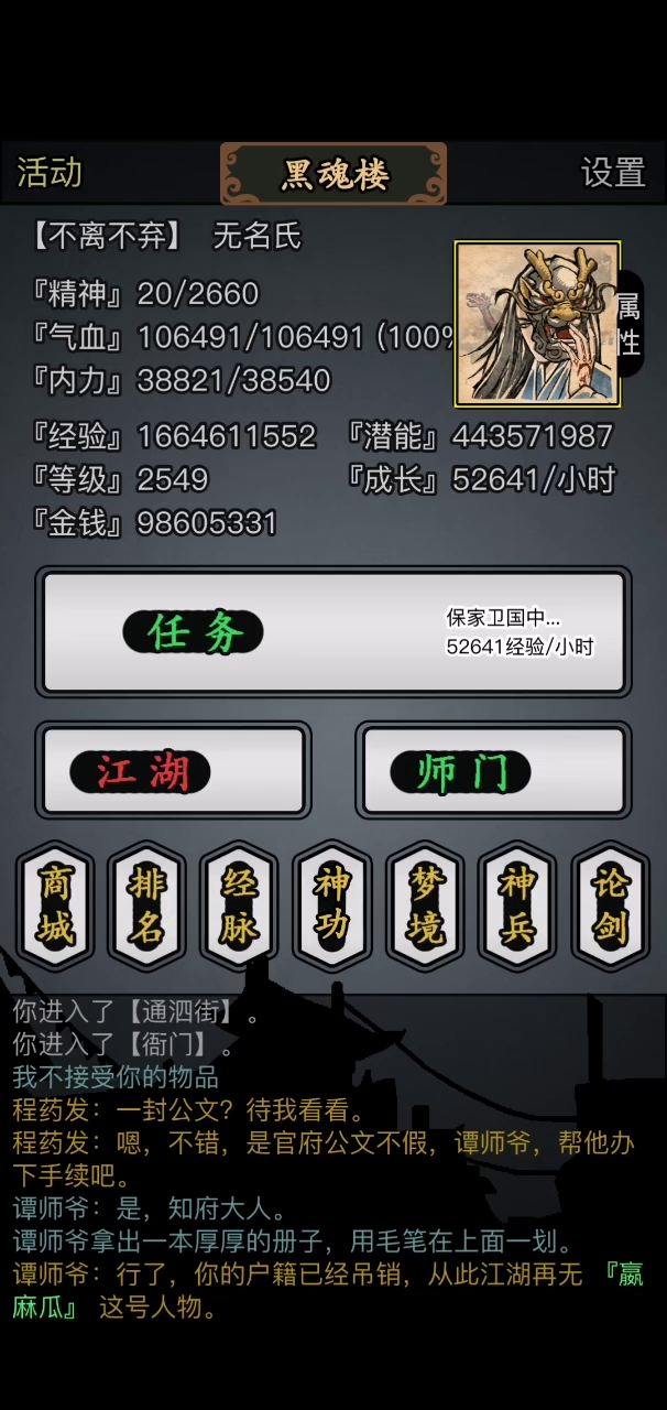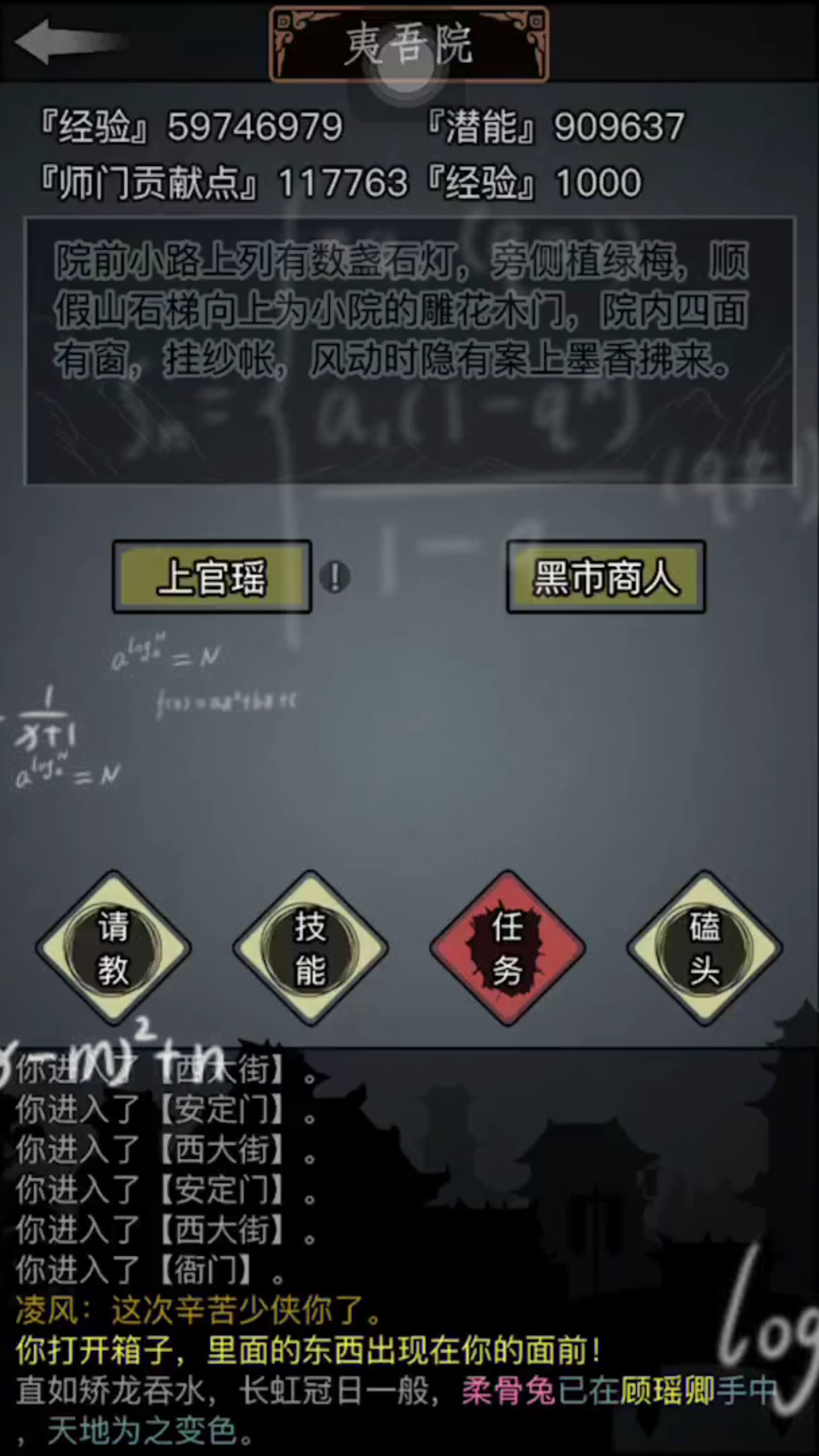 总算学了倚天屠龙功了,现在打我都不带掉血的,将苟字进行到底,今天古寺还掉了烟云缥缈步法四,我也有烟云了。