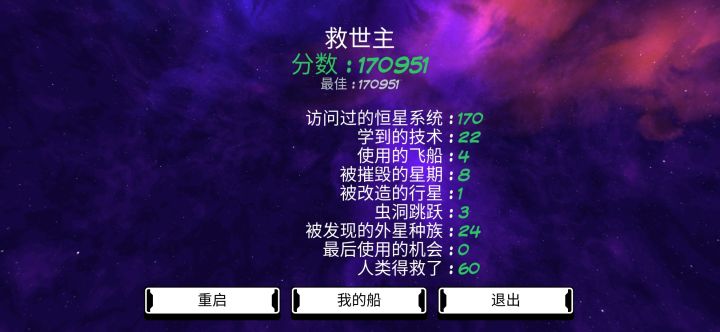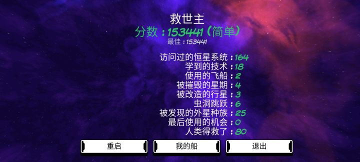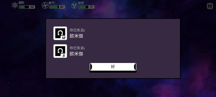 离谱的运气,开局走了没几步,挖星球触发捡到一个袋子,得到he*80,我:?然后飞了一段路,拿到新船,开局满护盾。碰到知识传授的那个生物,拿到了死亡种子制作图,刚好遇到强盗,刚好一个星球里资源都拿到了做好了,刚好强盗窝就在旁边,刚好在旁边一个星球拿到启动死亡种子的启动资源,于是就结局了…?拿到死亡种子制作图的时候还差两个元素的,随便登录一个生命星球,挖了一下,结果两个元素都到手了。触发强盗,发