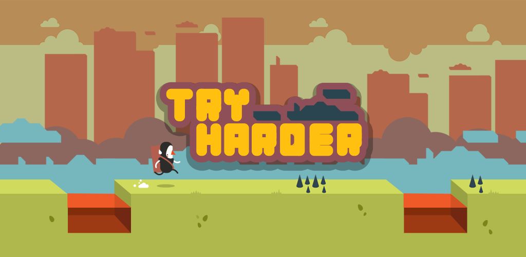作为一款平台跳跃游戏,《Try Harder》并不会给你什么高级的保命道具,只有在死掉后一句贱贱的“Try Harder”,勉强作为精神鼓励。小黑人会以极快的速度往前冲刺,你要做的就是帮助他在准确的时机跳跃、滑翔,一头冲进注定的死亡命运……每次死亡都会留下一具尸体,每次的成功都是在绝望中搏命。