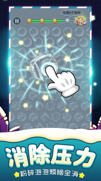有增加障碍玩法的闯关玩法——拯救萌星,关卡内有多种不同的障碍元素,增加了游戏的趣味性和难度