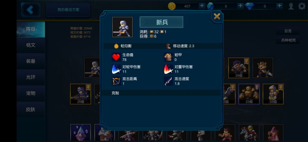 最基础的单位,脆弱不堪,最便宜 以前是2.4攻速应该,伤害好像只有7点,后来减了攻速加了伤害。也算合理(不然水晶新兵太顶拉)。78滴血25铭文野猪两下一个,骑兵三下一个,战斗猫9下一个😅战斗猫125滴血新兵要打11下才打的过,他俩互殴勉强算五五开吧 新兵同样也是不可或缺的兵种,不要小看新兵单兵能力太拉,实际上用处很大 作用: 1.新兵作为经济收益最高的兵种,前期收益效果可能不太明显,但是到了400