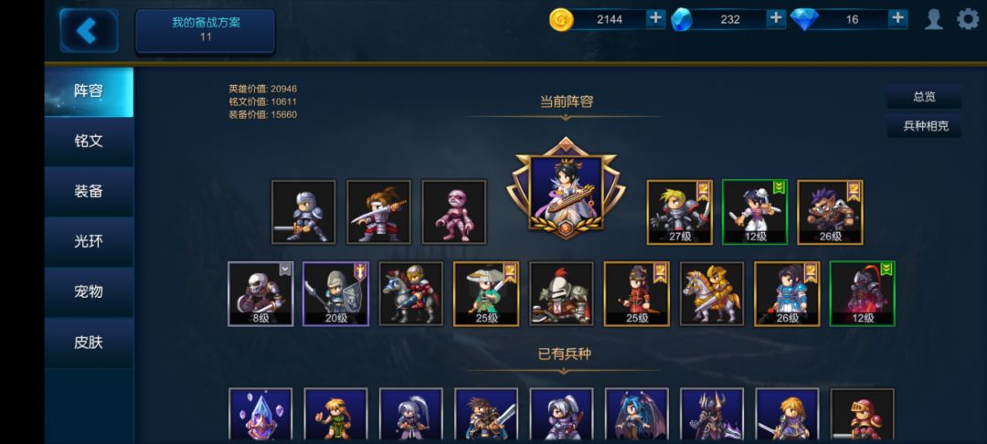 如图,11配兵前面,22后面,不推荐22,然后11配兵里面,武士骷髅不朽,看个人喜好,重剑修女男爵半人马勇者这些都行的,最后的黑骑也可以换,武圣先知万琪啥的。