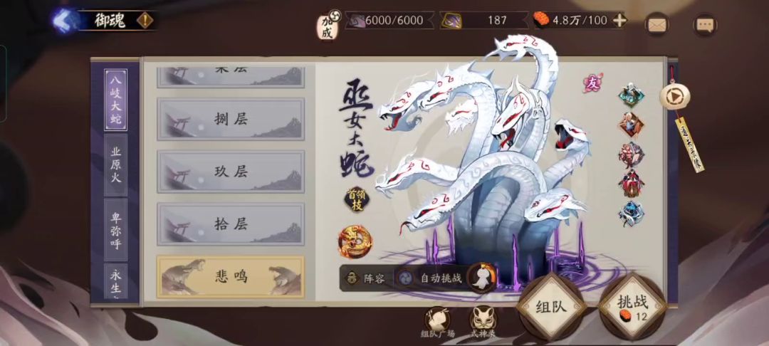 (*°ω°*)ノ"非萌新人员请撤离!! 萌新Dalao就要开课嘞(亲友:头都秃了还装什么萌新) 我们萌新前期应该练这些哒: 1、八岐大蛇——虽然八岐大蛇后期刷狗粮能力并不能和玉藻前这些式神相比,但八岐大蛇的泛用性对于式神较少的萌新是最广的,一些打不过的副本都可以用变蛇来通关!(大蛇呸呸呸那是真滴快乐)并且八岐大蛇在斗技中是T0级别,这个是必须练滴_(:3⌒゚)_(推荐度★★★★★★) 2、茨木童子