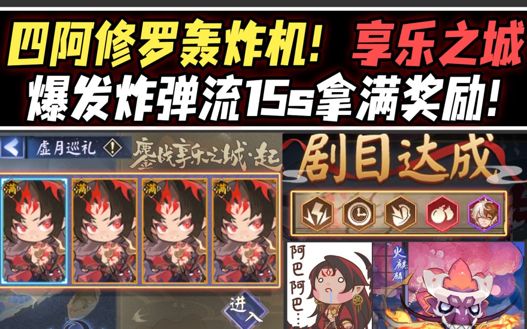 【阴阳师/虚月巡礼】四阿修罗轰炸机!享乐之城·爆发流15s满奖励打法!#游戏安利#攻略