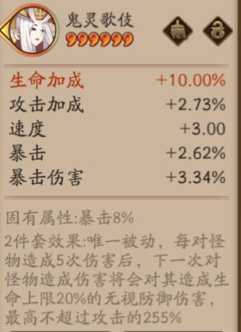 书接前文,本文从最后一个输出类御魂开始讲。 特殊类即首领御魂。 首先要注意的是首领御魂仅在PVE生效。 不同于普通御魂,单件首领御魂就有这属性加持。 作为输出,一般选择固有属性带8%暴击或是8%攻击加成的首领御魂。(前提是主词条对哦。) 在PVE中,最终的成型输出套装,狂荒,狂歌,狂土。均是指的输出四件套加首领御魂二件套。 区别于普通的二件套,除了多的1%属性,首领御魂还能提供额外的PVE效果。 效