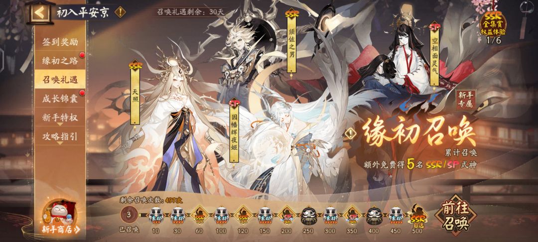 本人也是萌新过来的,斗技长路漫漫我也是菜鸡,但能给迷茫萌新提供一些PVE游玩思路。 11月9日新区预约就开启了,新区开服时间11月19号并伴随阴阳师一年一度的大型活动超鬼王,想入坑的小伙伴可以在登录界面的左下角或微信小程序去预抽卡一共可抽180次,就算错过了预约时间也没关系,开服后预约卡池会在游戏内存在一段时间,抽到的卡可以带进游戏(1个SSR/SP卡名额,1个SR卡名额,1个R卡名额,额外有