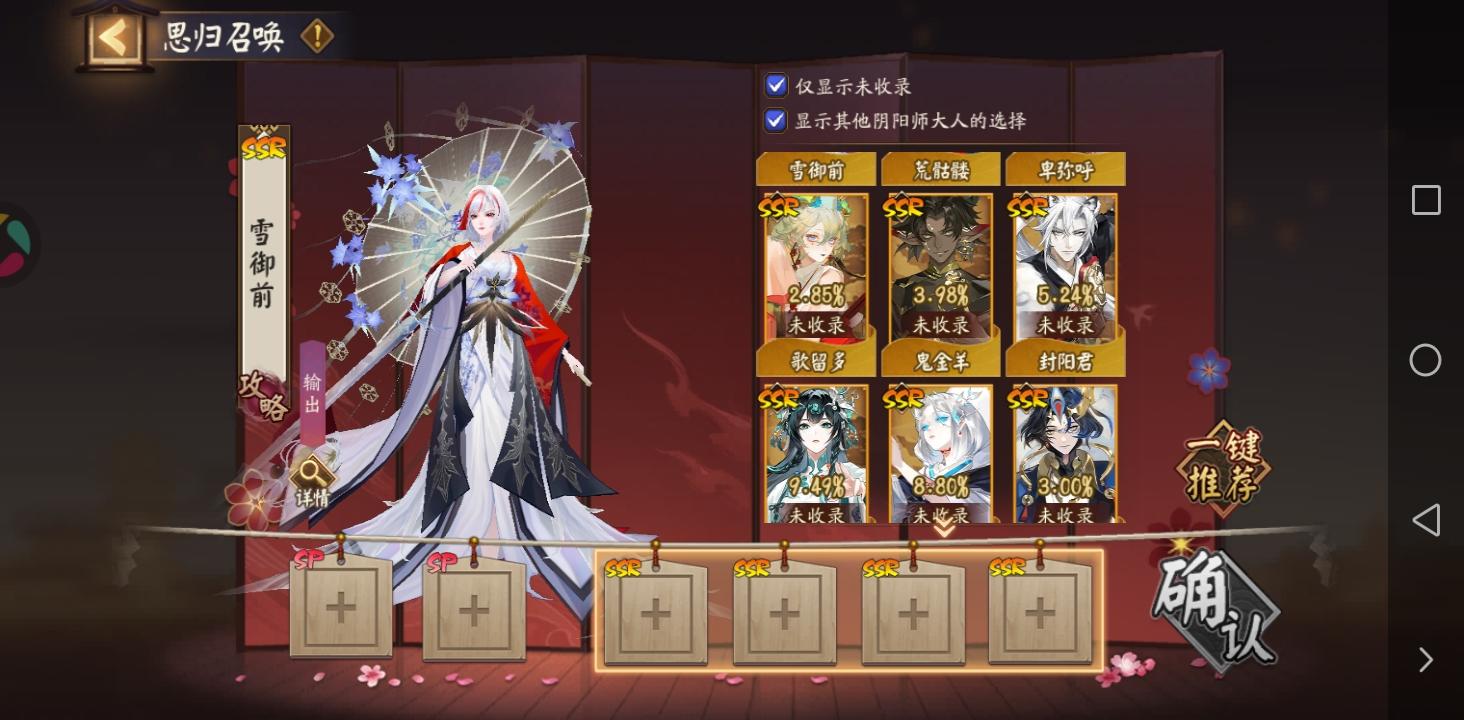 如图,这个思归召唤选那个式神好,不打斗技,回来看看崽,打打日常pve休闲游戏。。。