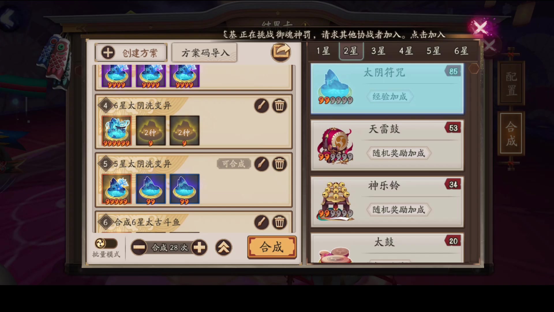 阴阳师:这不刚打完活动开了箱子嘛,所以有不少小结界卡,今天就来合成一下,希望多给我来几个太鼓吧,我太鼓都快用完了,我每次合成结界卡的时候都疯狂呐喊太鼓太鼓太鼓,给我多来几个太鼓,我快没勾玉了。#游戏推荐#攻略#游戏讨论#游戏安利#游戏资讯