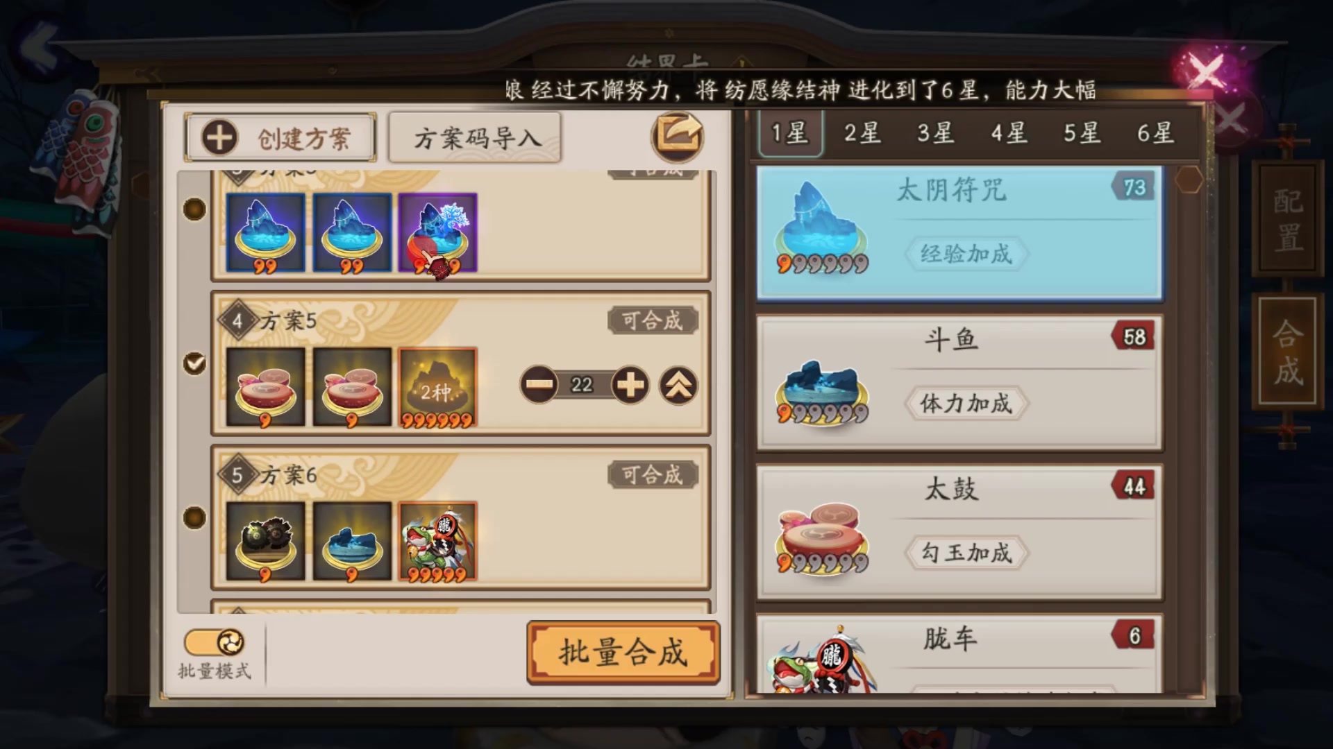阴阳师:现在没有多少勾玉了,有点慌,结界要放太鼓才能把勾玉快速填回来了,所以合成一下结界卡攒点勾玉吧,因为缘结神抽卡抽干了,抽了450抽啊,我现在好穷啊,嘤嘤嘤。#夏日游戏安利大赛Vol.2#游戏安利#游戏讨论#游戏资讯#游戏推荐#单机游戏