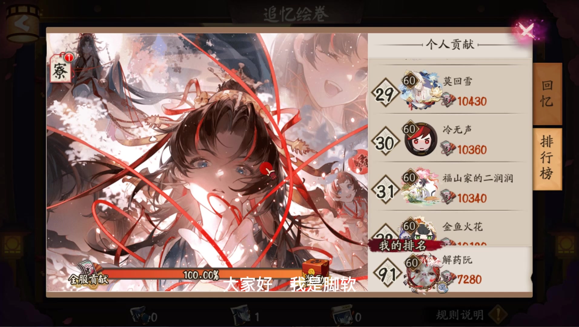 阴阳师:这是解药铁的号啦,解药阮昨天争前一百名是争到了嘛,所以也想给解药铁争一下绘卷的前100名,但是没争到,因为我没有蓝票了,而且分差太多了,来不及,只能说可惜我抽了那么多蓝票。#夏日游戏安利大赛Vol.2#攻略#游戏推荐#游戏资讯#游戏讨论#单机游戏