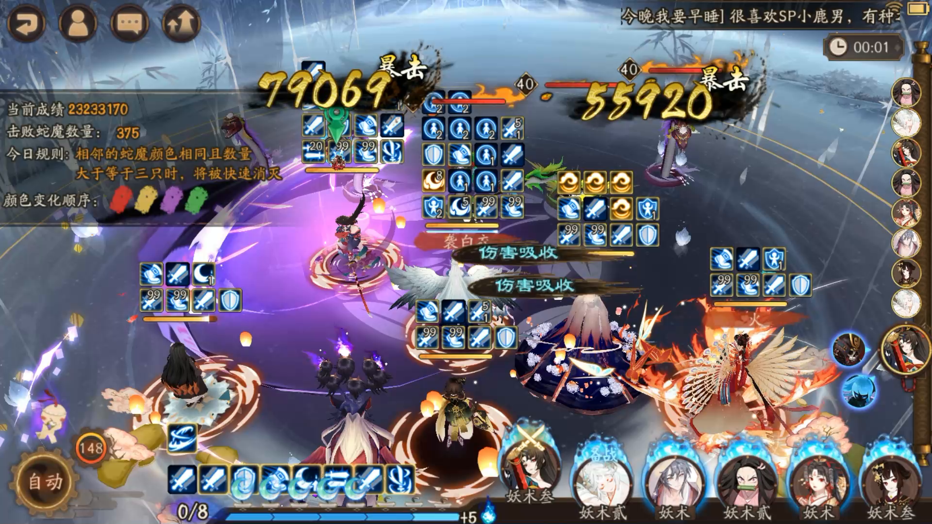 阴阳师:这几天试了一下,我感觉这就是我的妖刀姬的极限啦,在全自动的操作下,一共是551条蛇魔,有人可以凹到600条,@冲浪受受子 就帮羽毛凹过600条蛇魔,但是我想我应该不行,御魂没有羽毛的好,我就放弃了,551也挺好的。#游戏种草计划#游戏安利#游戏讨论#游戏福利#游戏推荐#攻略