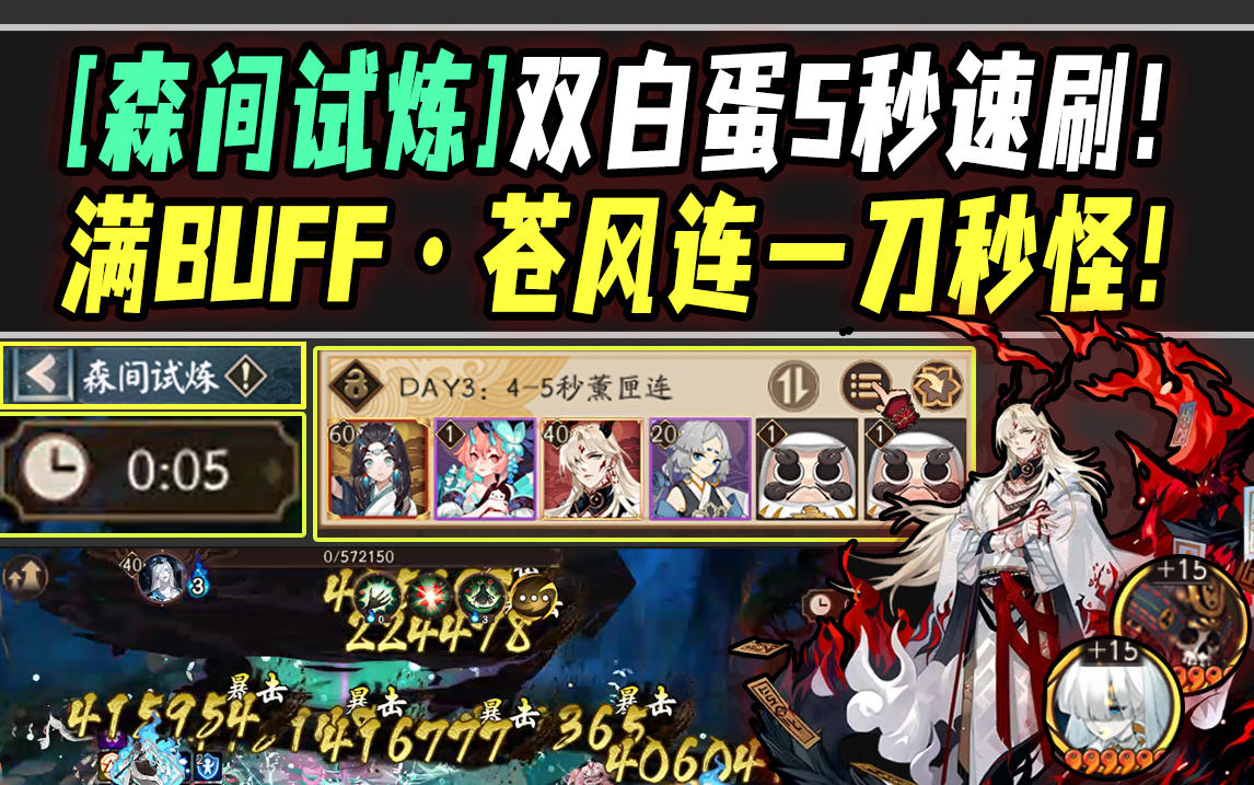 【阴阳师/森间试炼】双白蛋5秒速刷!DAY3满加成·苍风连一刀全秒!#攻略