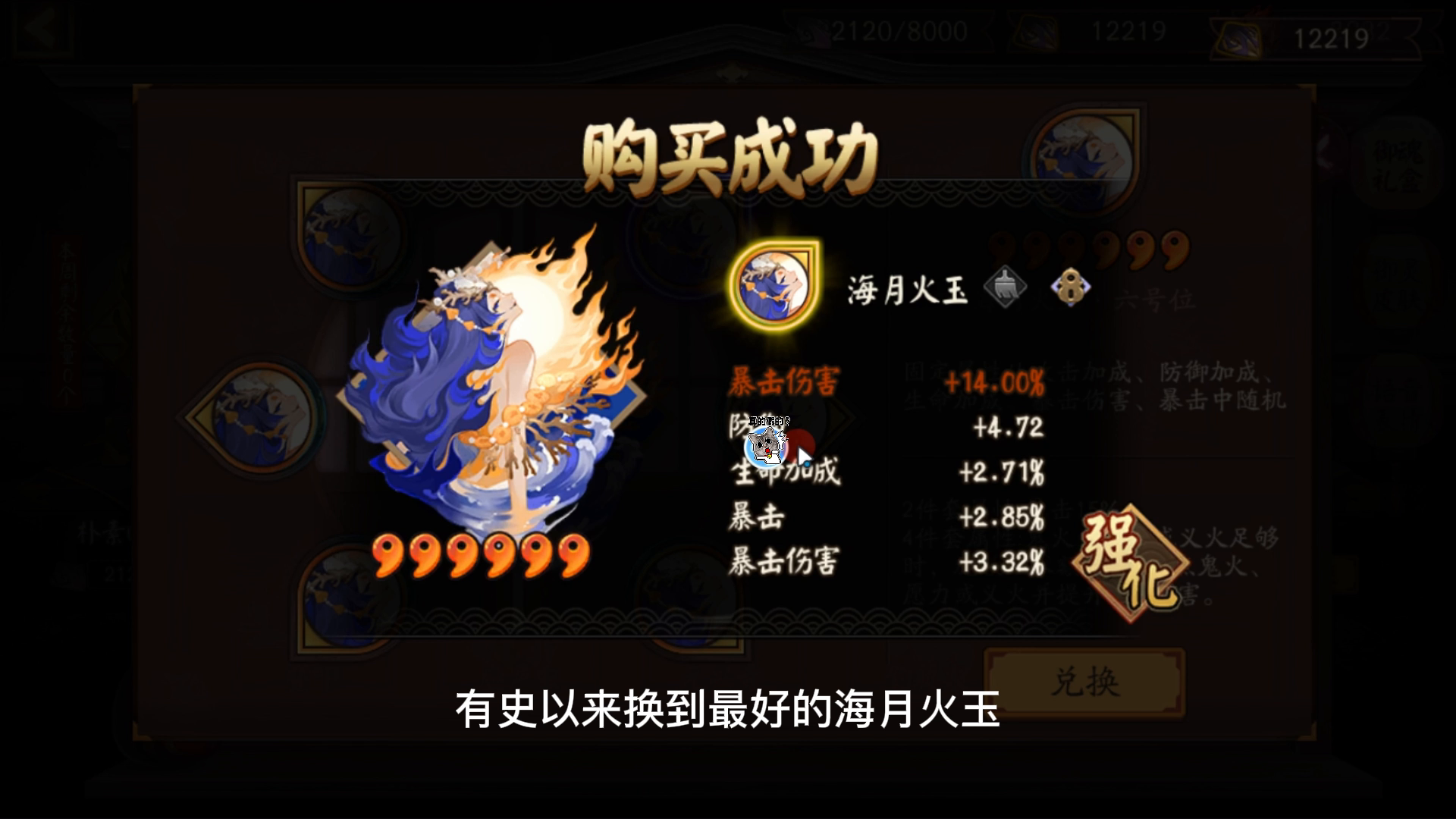 阴阳师:在御魂屋随便换换御魂,没想到得到一个绝世好御魂,立马强化一下,不强了今晚都睡不着觉,要是爆伤+22就完美了。 只能说可惜了,但凡再加一点暴击伤害都是极品,哎。#TapTap七周年安利狂欢节#攻略#游戏推荐#宝藏厂商#游戏福利#单机游戏