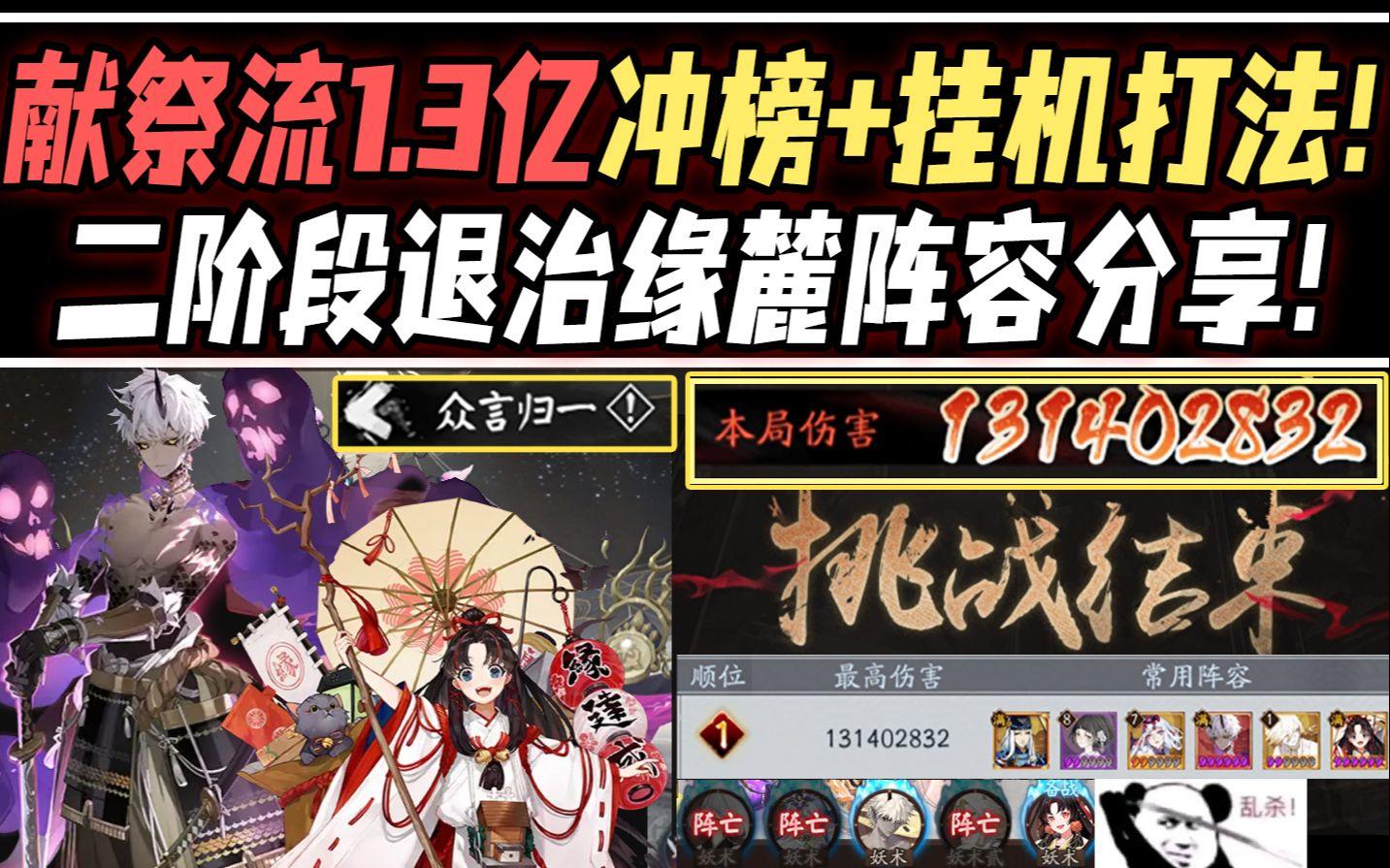 【阴阳师/众言归一】献祭流1.3亿冲榜+挂机打法!二阶段退治缘麓助你拿满奖励!