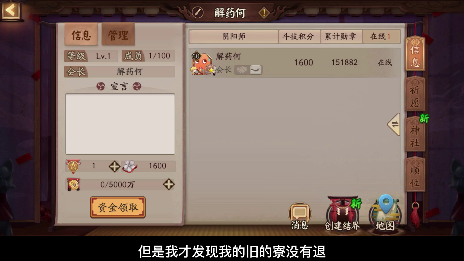 阴阳师:哈哈哈,我的错,会长找我加寮了我才发现我没有退寮, 只能出此下策花50勾玉创建了一个寮,然后看一下怎么合并阴阳寮,终于成功加入顺位第一的青灵阁大寮,在这里学习一下大佬游戏策略,顺便白嫖一下碎片吧。#宝藏游戏安利派对#攻略#游戏推荐#游戏安利#单机游戏#宝藏厂商