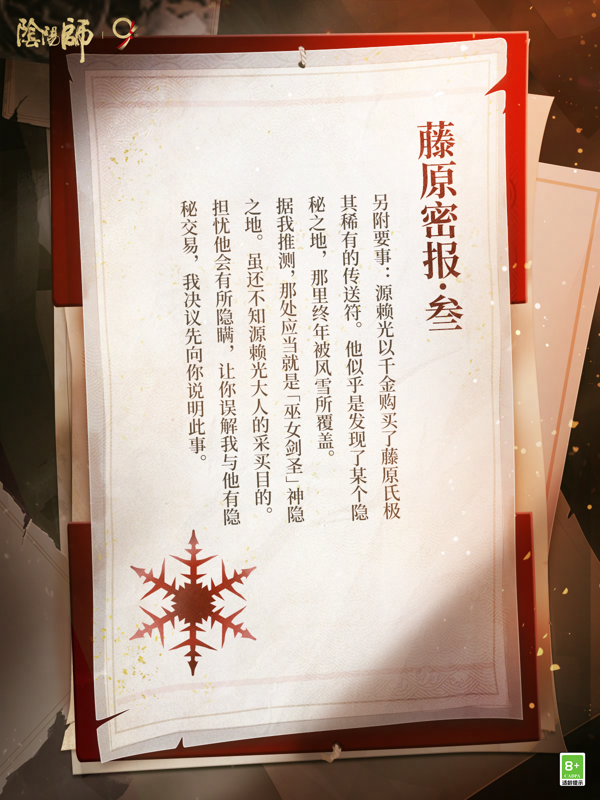 身为天才巫女,源雪姬自幼便背负家族职责。她承载着众人的期许,在修行之路上亦从不曾懈怠。 直至噩耗接连传来,绝望将源氏一族笼罩,她毅然握起沉寂高阁中的封印之刃,以灵力相融剑身,孑然一身,守护于族人之前—— 「源氏——还有人在!」 《阴阳师》全新版本「冰火永烬」9月10日开启,全新SSR阶式神雪御前(CV:早见沙织 / 四喜)即将降临平安京! #阴阳师九周年 #雪御前 #阴阳师历九弥珍 #阴阳师
