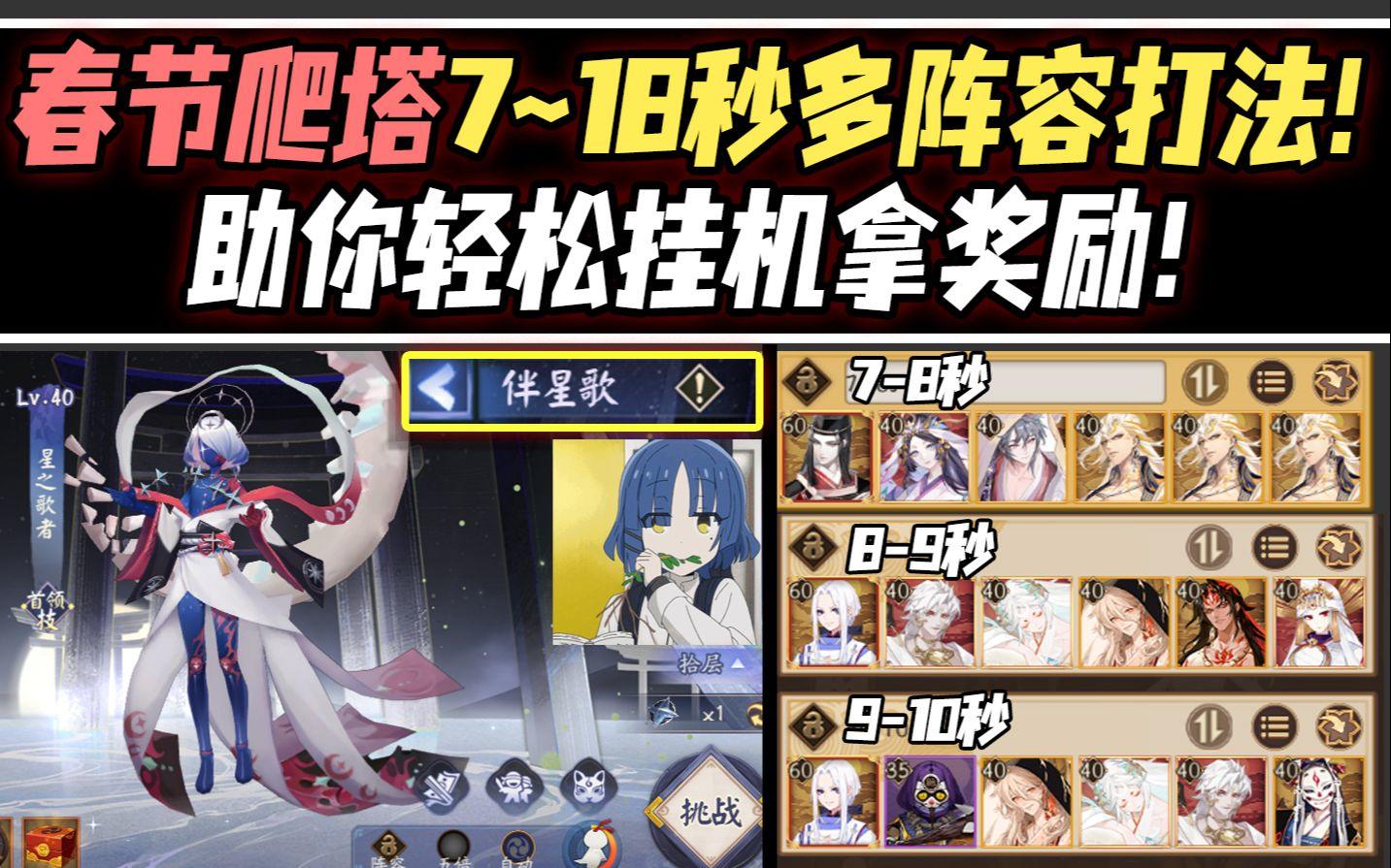 【阴阳师/伴星歌】春节爬塔7~18秒多阵容打法!助你轻松挂机拿奖励!
