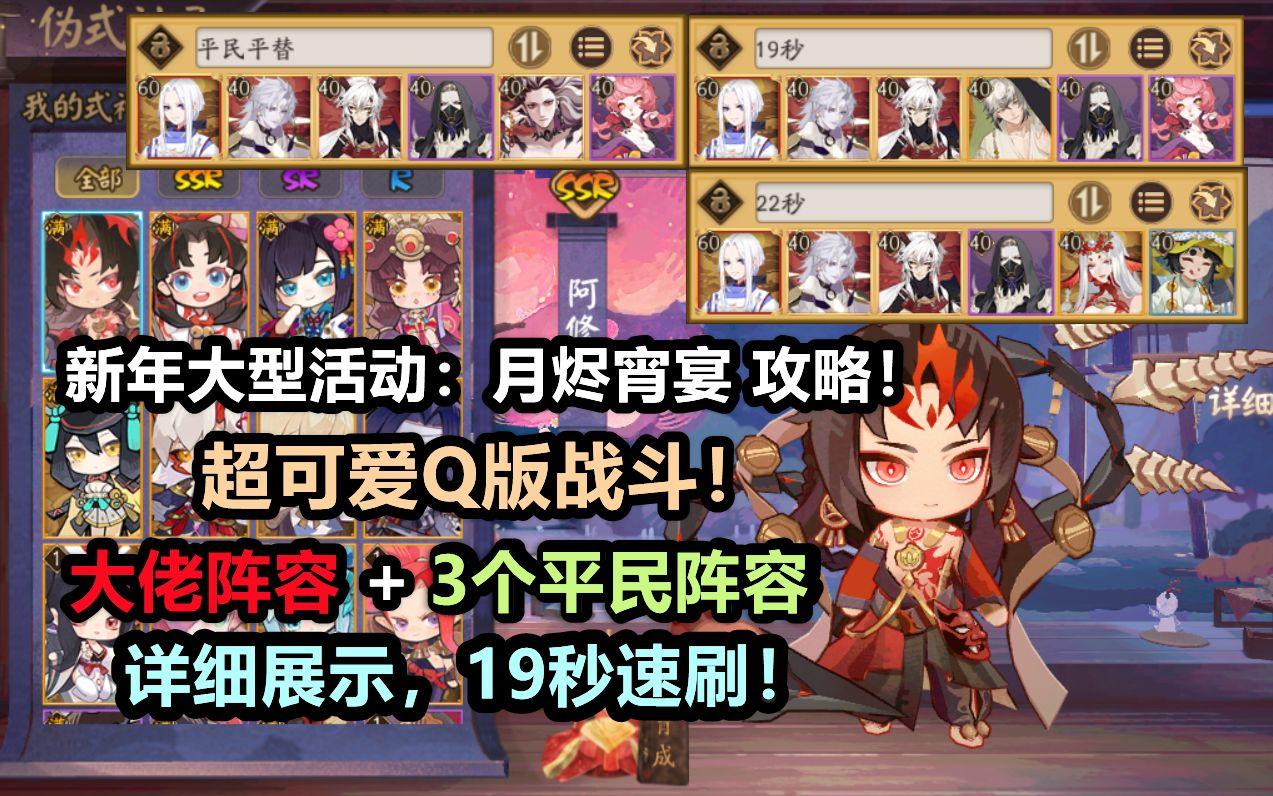 【阴阳师】新年活动 月烬宵宴 攻略:超可爱Q版战斗!3个平民阵容+大佬阵容详细教学,19秒速刷!