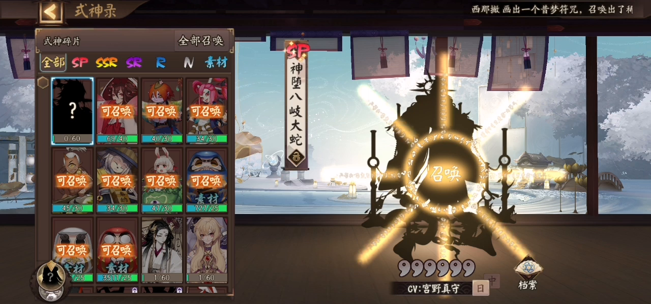 阴阳师:我终于有须佐了,终于轮到我六星须佐之男了,我有新老婆了,但是我吧黑蛋都喂给了食灵所以没有足够的黑蛋了,只有8个黑蛋,技能是353,不知道下次有黑蛋是什么时候,也不知道最终技能是355还是555.