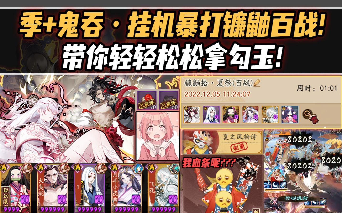 【阴阳师】季+鬼吞挂机暴打镰鼬百战!轻轻松松拿勾玉!