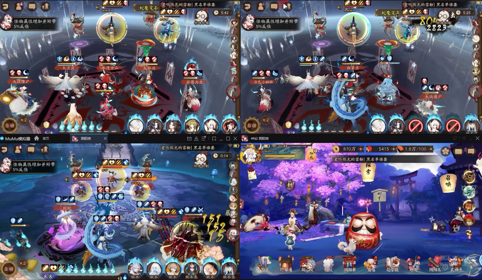 阴阳师:四个号一起打妖刀姬副本,虽然慢了点但是好歹打完啦