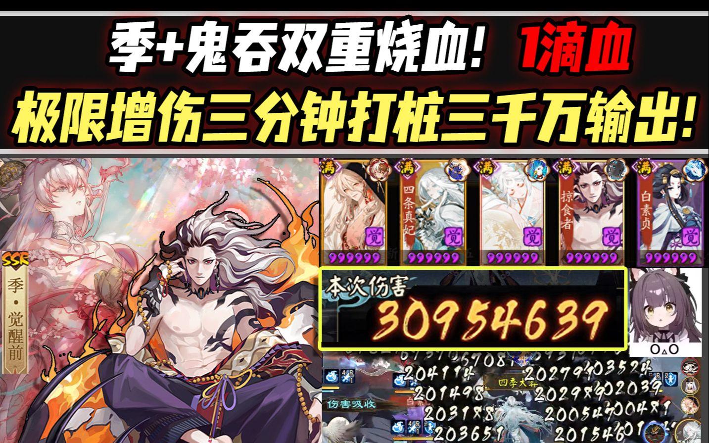 【阴阳师】季+鬼吞双重烧血!1滴血极限增伤三分钟打桩三千万输出!
