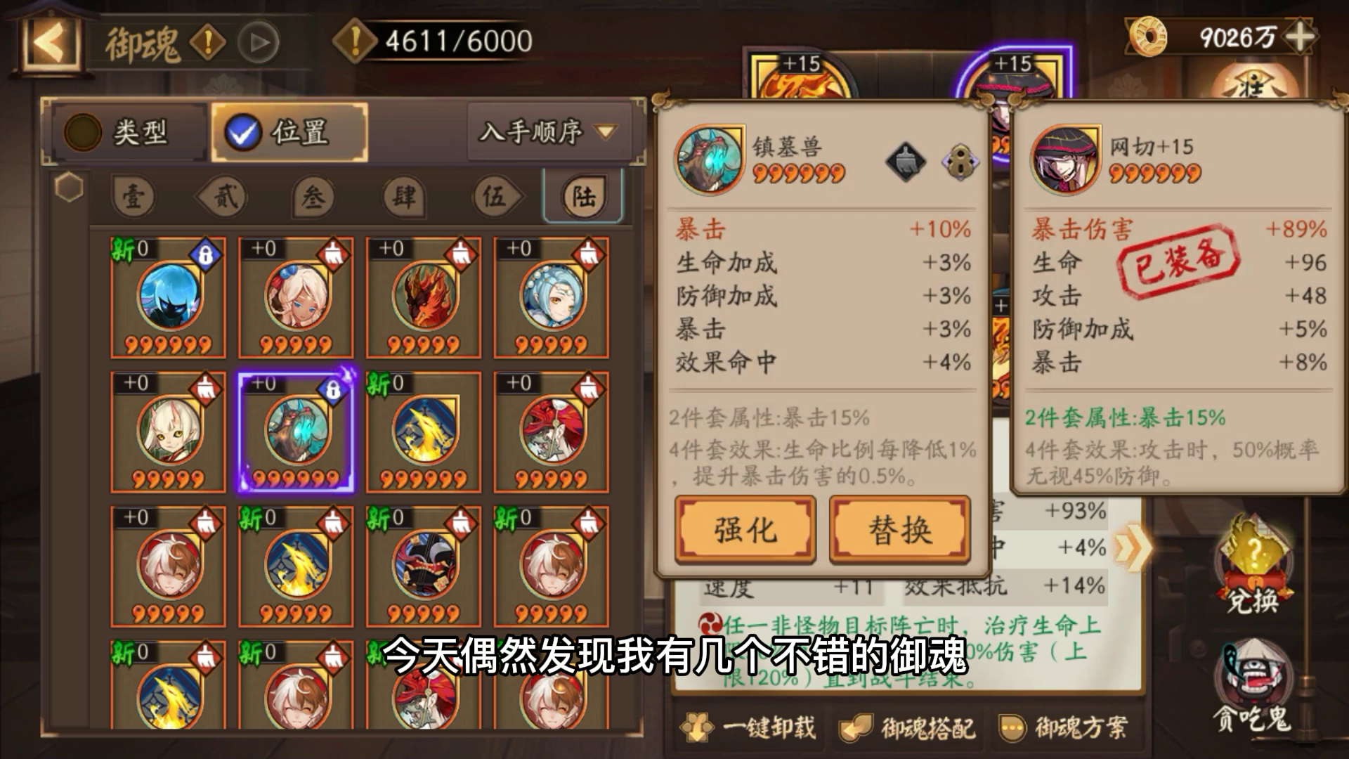 阴阳师:今天强御魂发现一个六号位极品破势暴击御魂,马上开录屏录上了,结果就是暴击伤害才加15%,要是加到22就极品中的极品了,可惜了,歪了两次,不过这种御魂不愁用,还是很不错的。