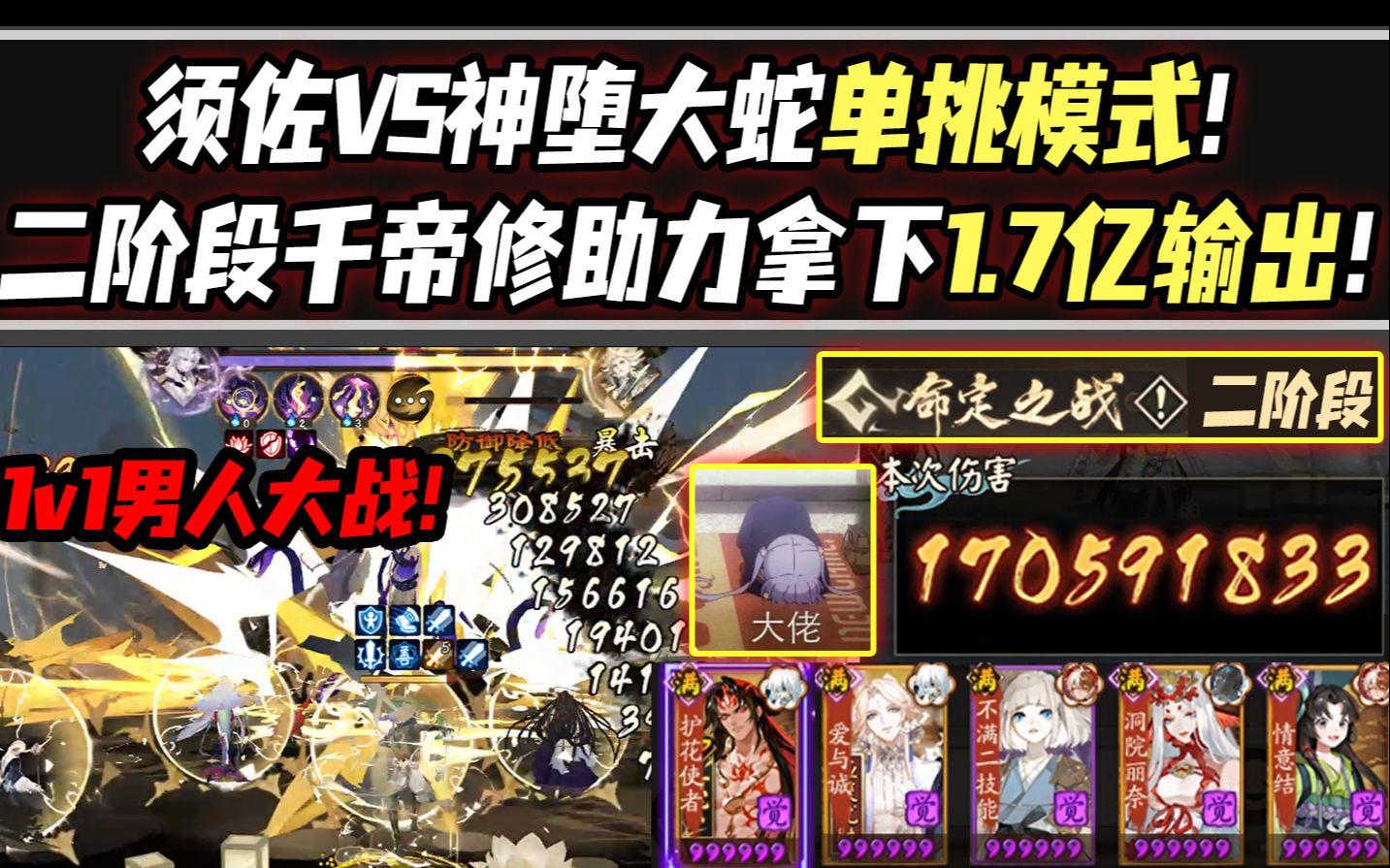 【阴阳师/命定之战】须佐VS神堕大蛇单挑模式!二阶段千帝修助力拿下1.7亿输出!