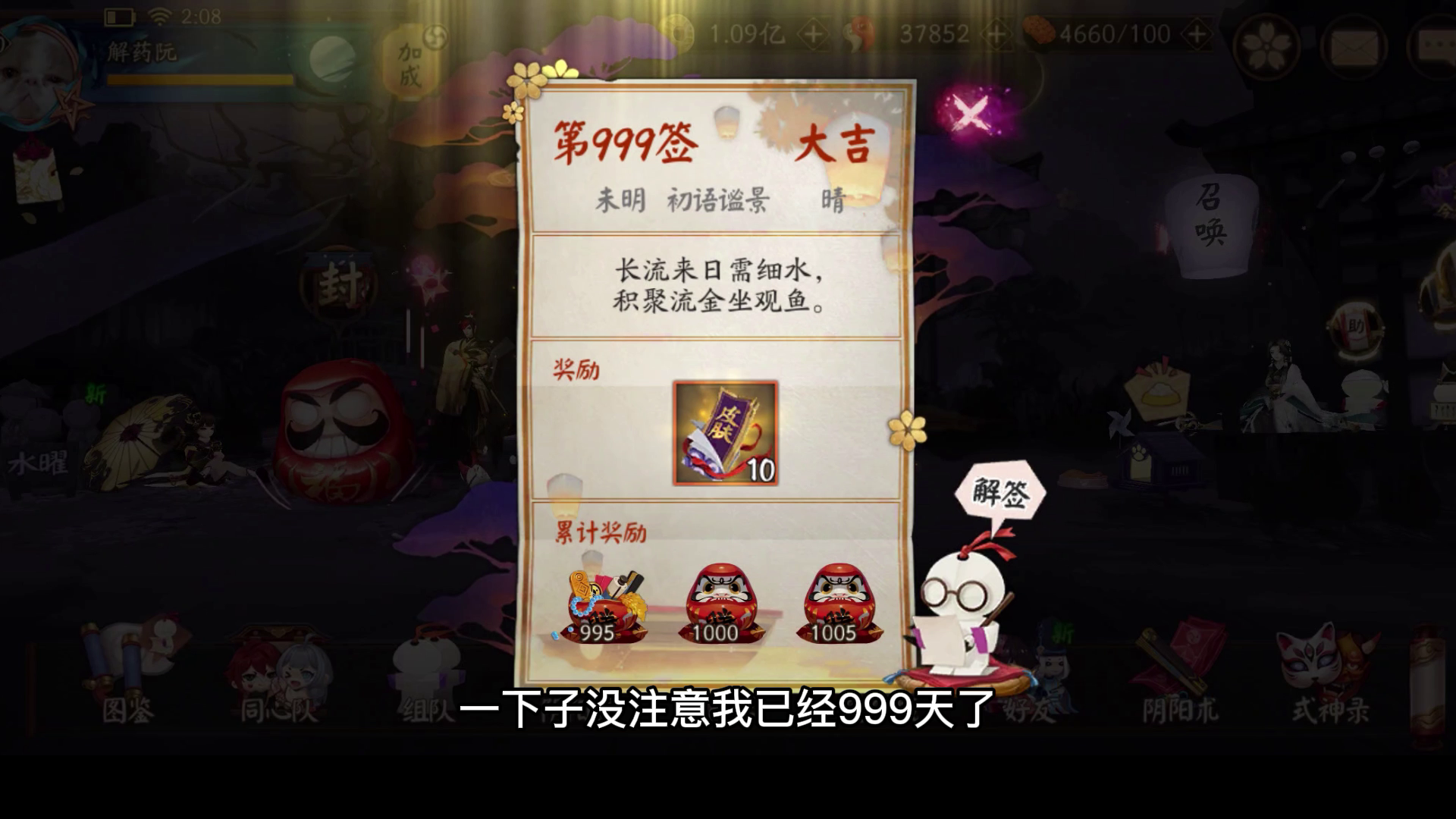 阴阳师:热烈庆祝我完成999天签到,即将成为摸鱼的千天大佬