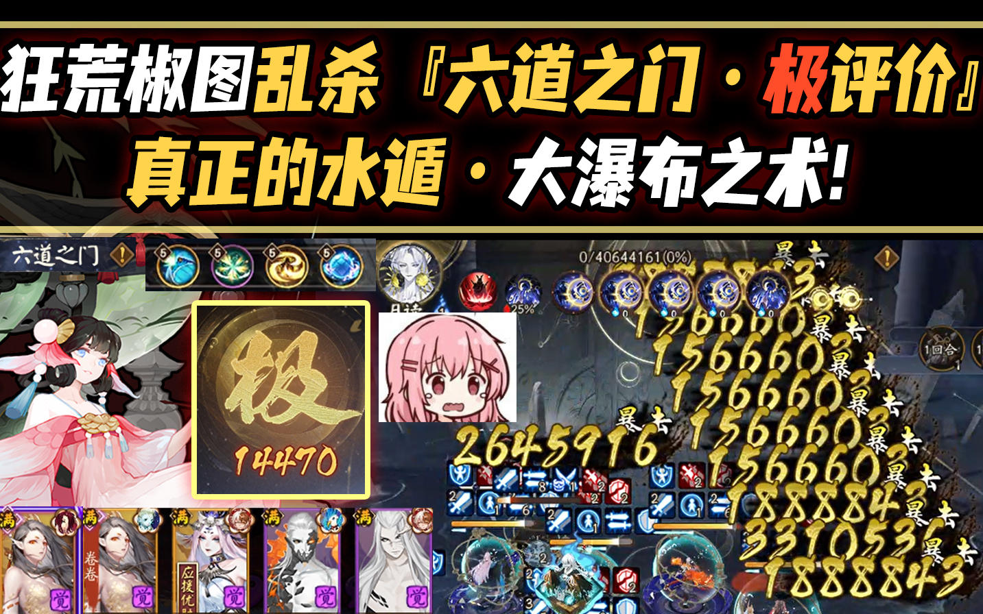 【阴阳师】血条消失术!狂荒椒图乱杀『六道之门·极评价』!真正的水遁·大瀑布之术!