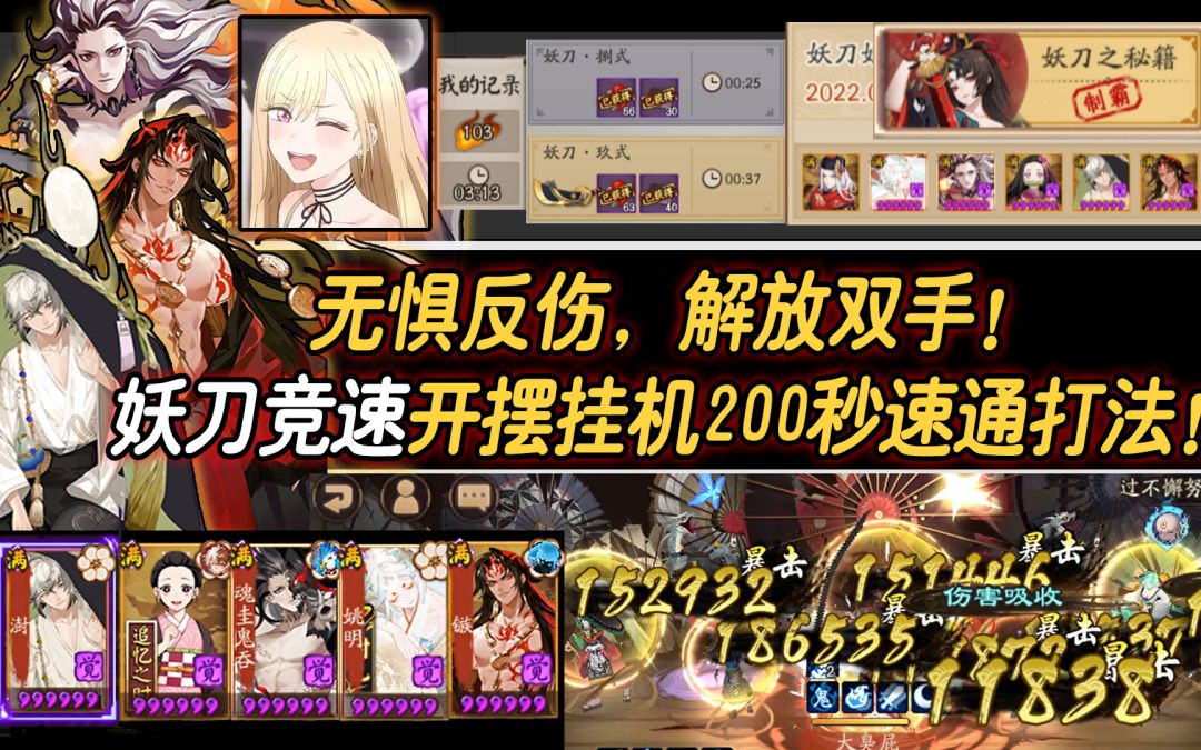 【阴阳师】无惧反伤,解放双手!妖刀竞速挂机200秒速通打法!