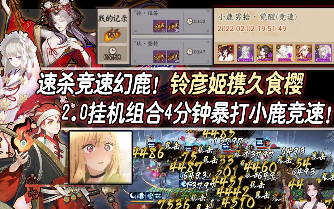 【阴阳师】速杀竞速幻鹿!铃彦姬携久食樱2.0挂机组合4分钟暴打小鹿竞速!