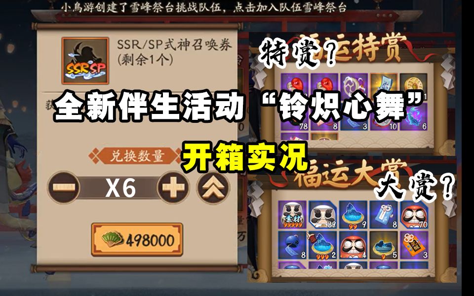 【阴阳师】ssr/spX6开箱!“铃炽心舞”活动宝箱开箱实况!