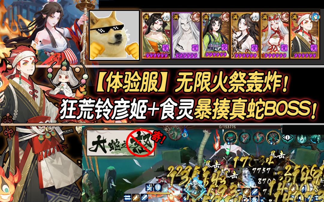 【阴阳师】无限火祭轰炸!狂荒铃彦姬+食灵暴揍真蛇BOSS!