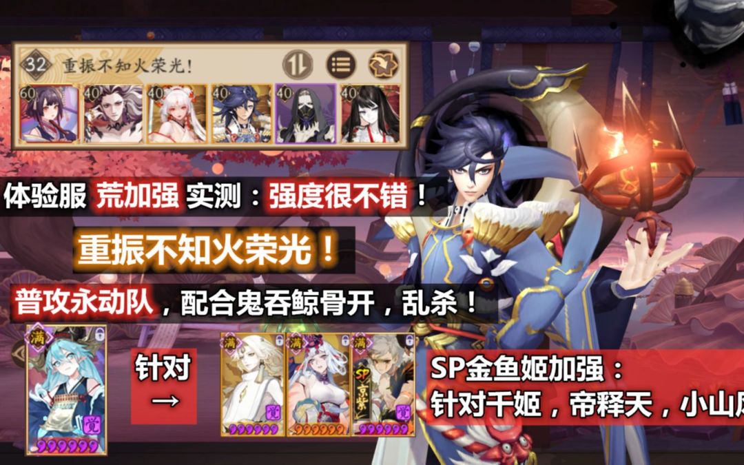 【阴阳师】荒 加强实战:强度很不错!重振不知火荣光,普攻永动队乱杀!SP金鱼姬加强针对帝释天千姬小山风!