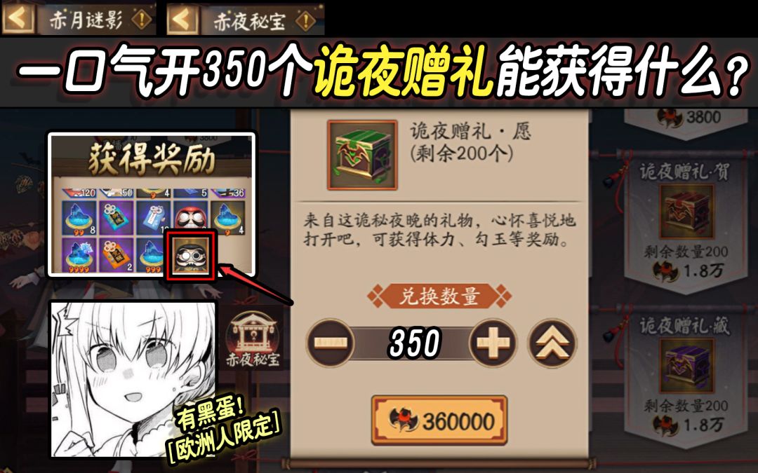 【阴阳师/赤月谜影】一口气开350个诡夜赠礼能获得什么奖励?