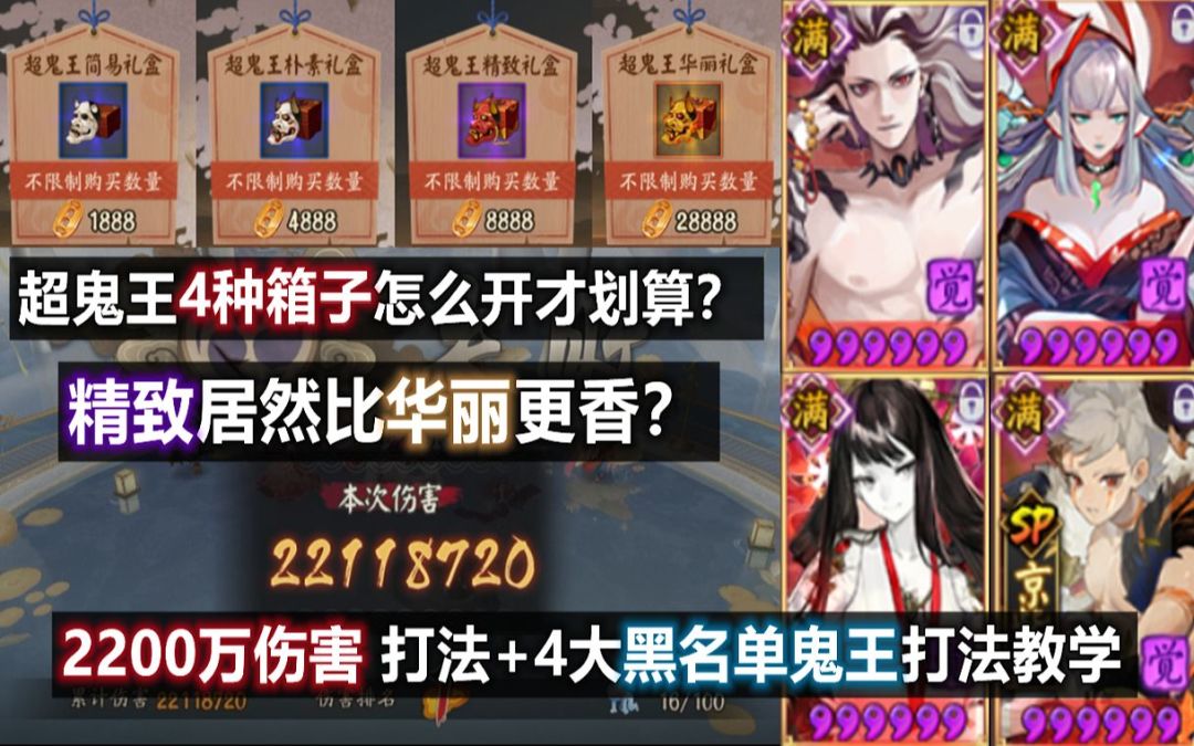 【阴阳师】超鬼王4种箱子性价比试水:精致居然比华丽更香?!白名单2200万攻略+4大黑名单鬼王打法教学。