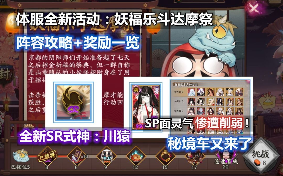 【阴阳师】新式神 川猿 基本实锤!体服新活动:妖福乐斗达摩祭 阵容+奖励一览。SP面灵气惨遭削弱,秘境车来了。