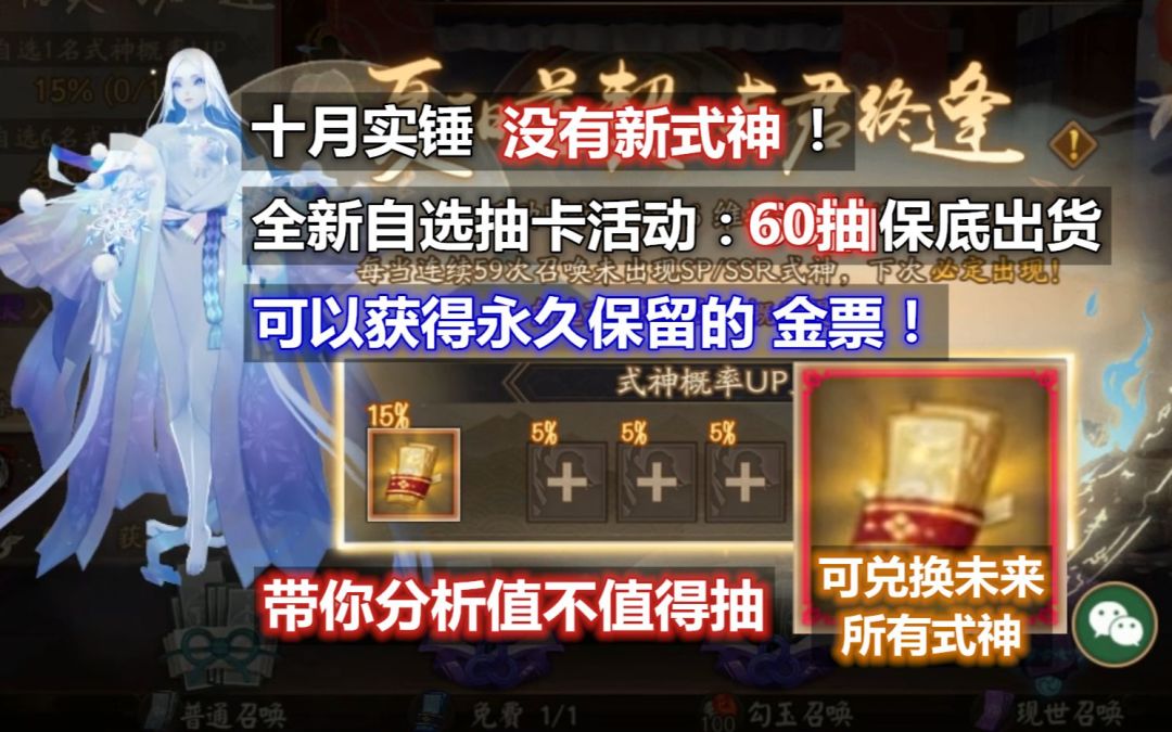 【阴阳师】10月全新大型抽卡活动:可得永久保留的金票,兑换未来任何SSR/SP。60抽保底出货,真的值得抽吗?