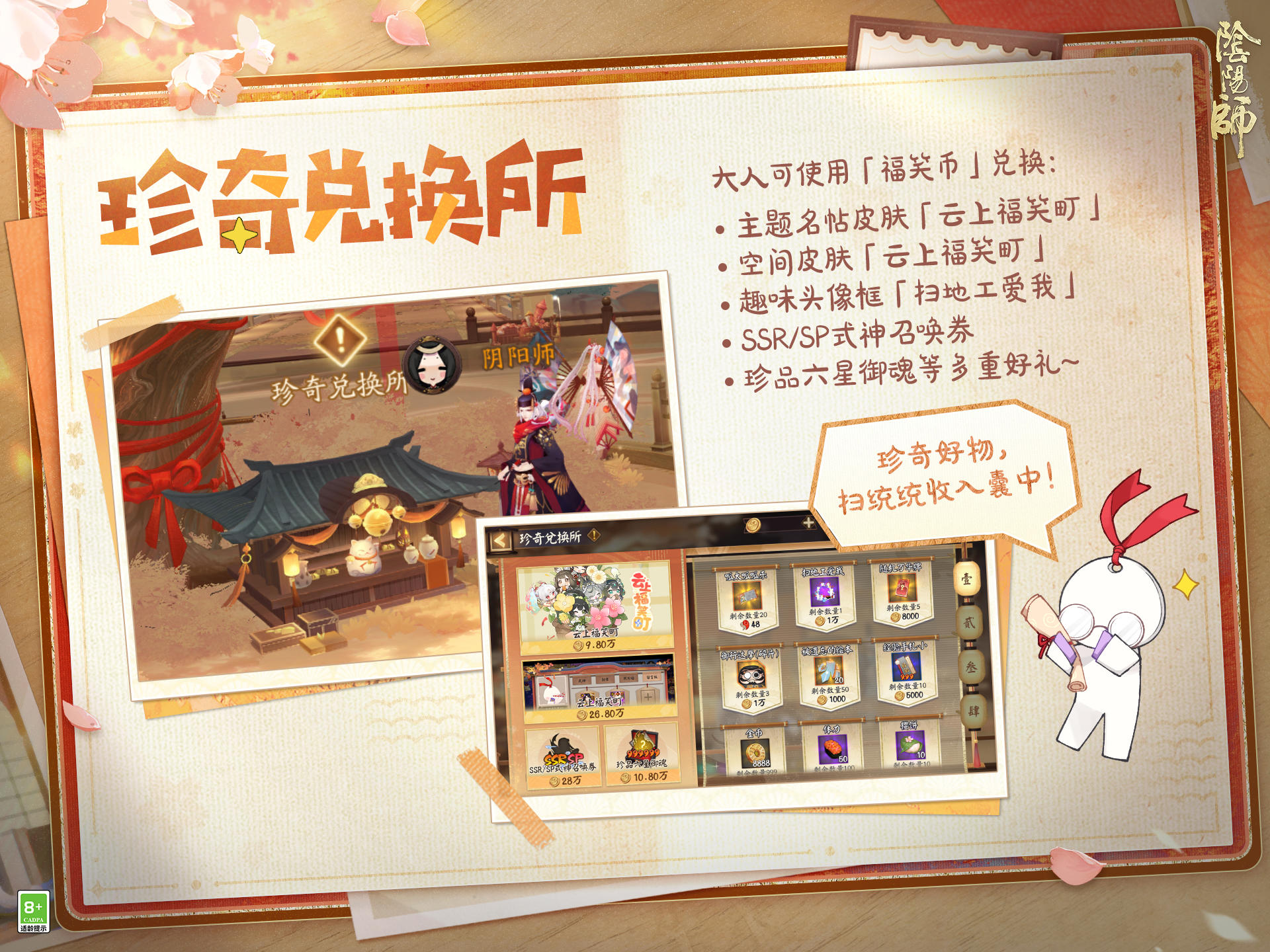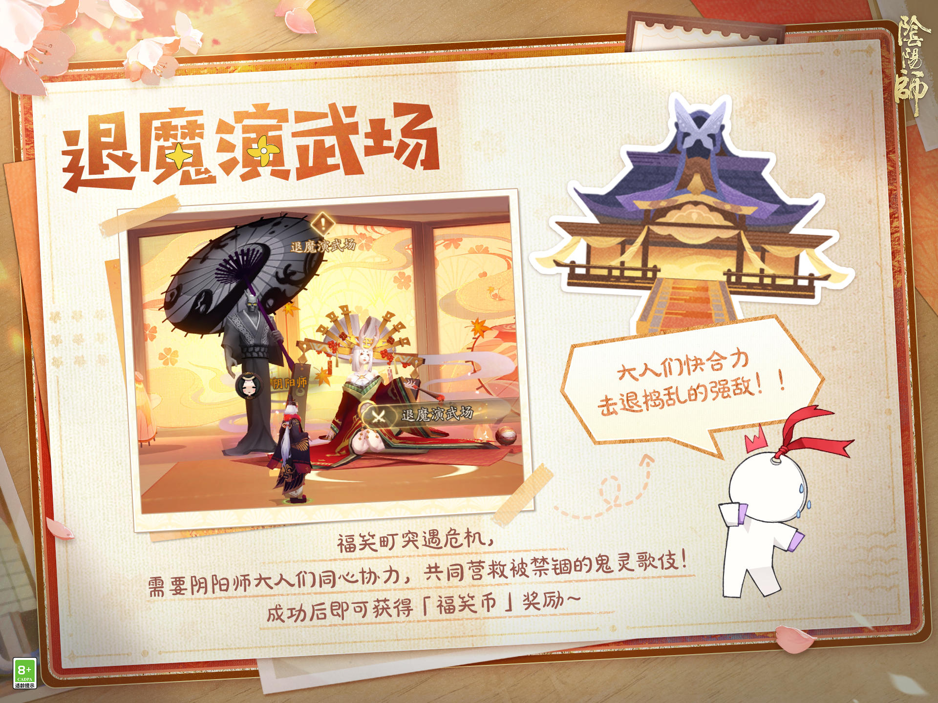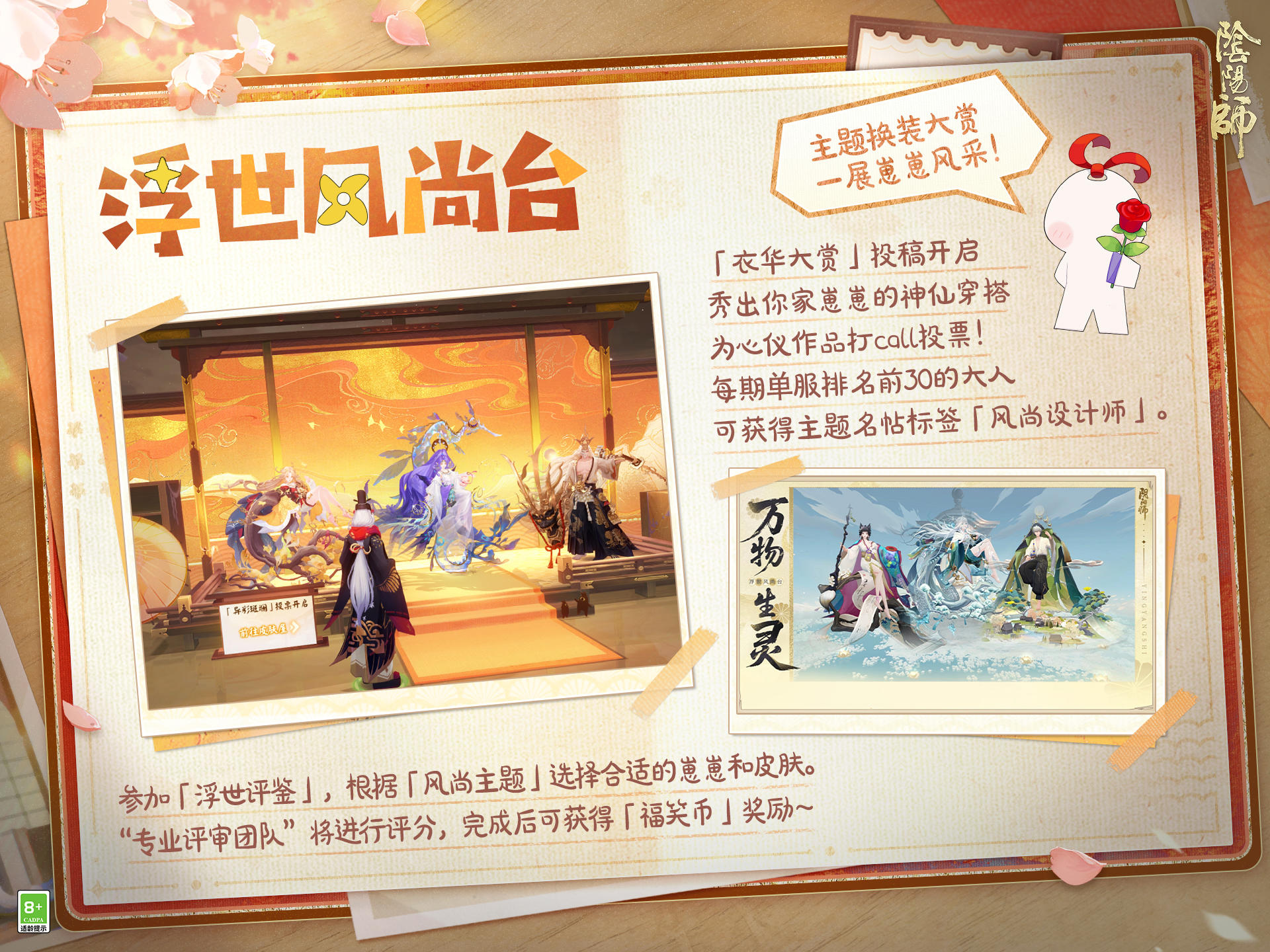 宿光焕银辉,振袖引星回,灵木苍龙巡碧落,东风破晓叩春扉。 △全新「步野观星」系列皮肤即将上线!晴明新皮肤「星蛟宿影」将于1月21日维护后-2月10日23:59限时上架「星品专卖店」活动,大人参与活动祈愿即可兑换。 ※活动期间,大人使用「星宿福札」进行祈愿可获得「星宿印记」等奖励,首次进入活动可获得5个「星宿福札·免费」。「星宿印记」可用于兑换商店中两款全新限定皮肤,两款全新姿度「晴明·星仪纸扇·灭