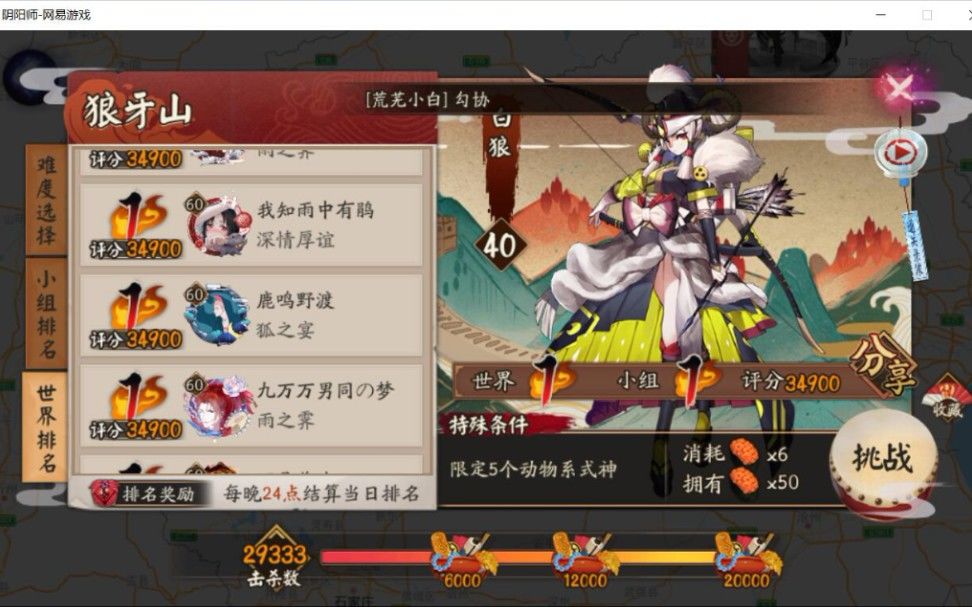 【阴阳师】[杜鹃地鬼日记]狼牙山五动物34900并分