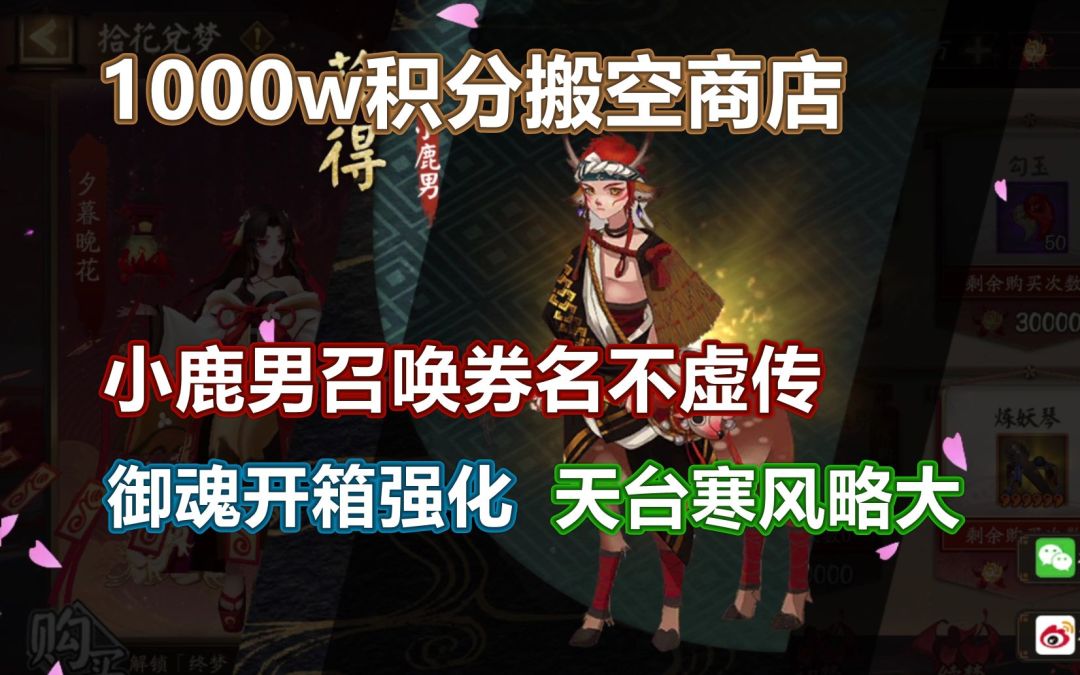 【阴阳师】1000w分搬空商店,小鹿男召唤券名不虚传!御魂强化,天台风大